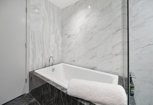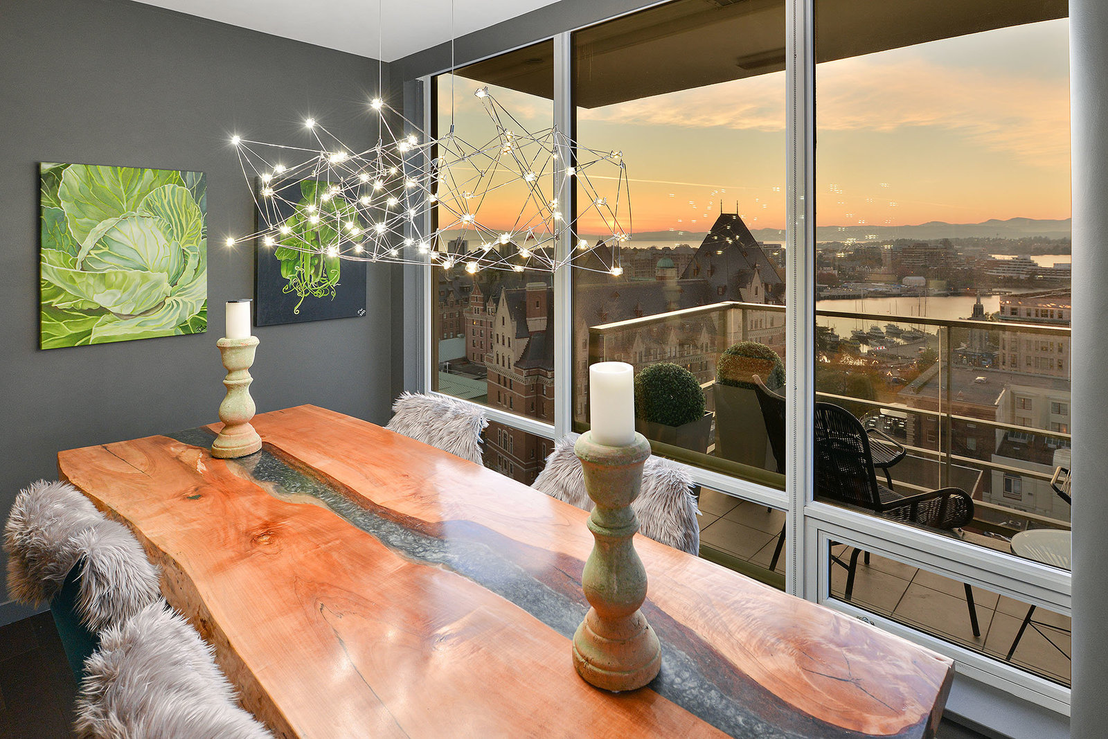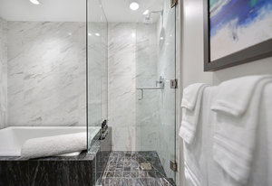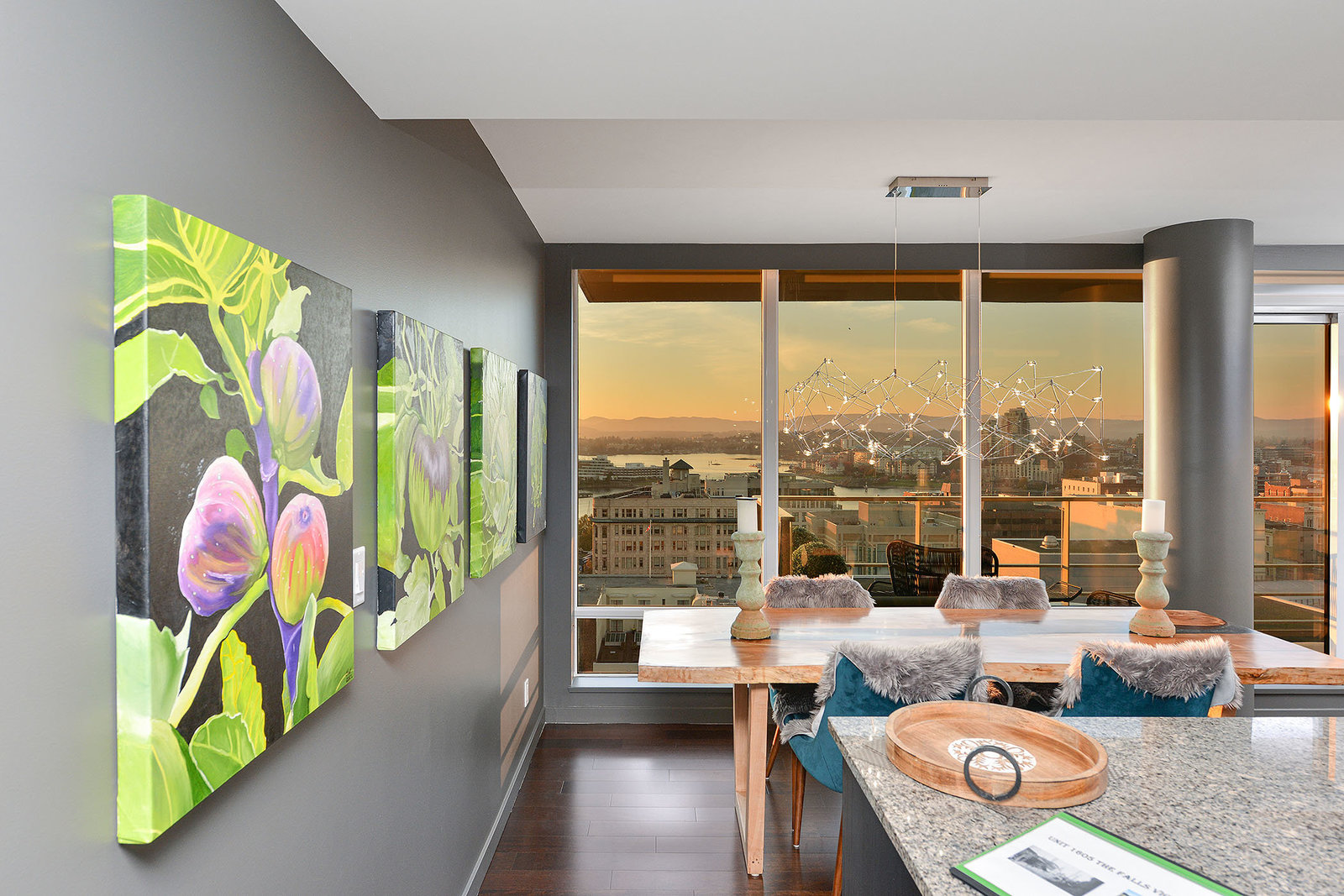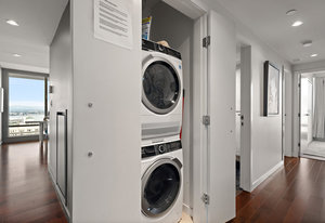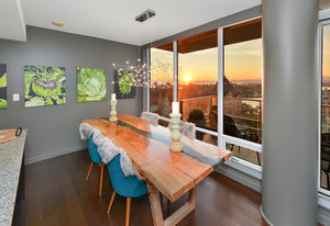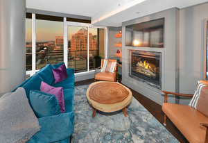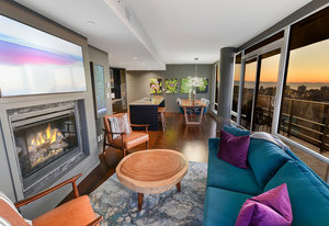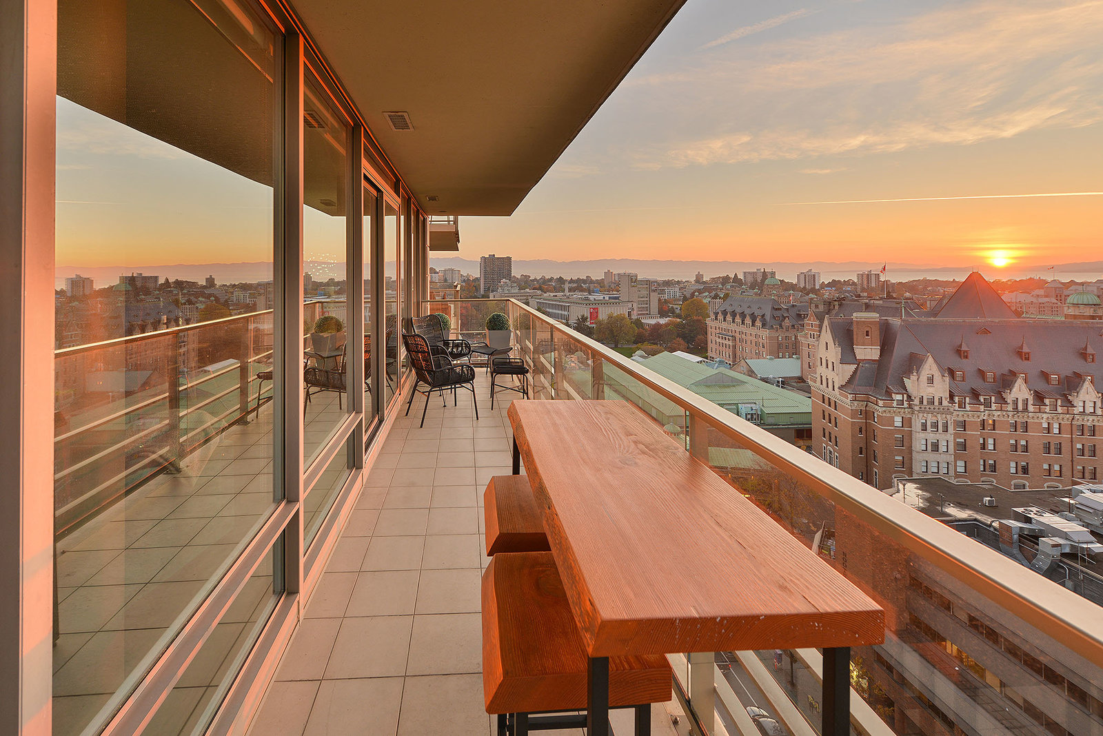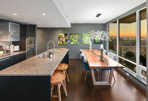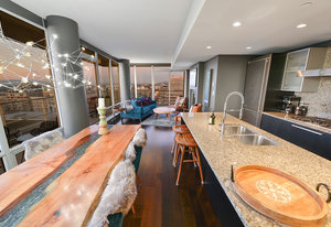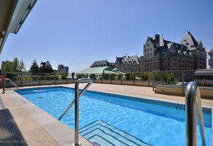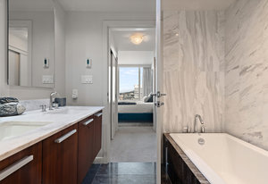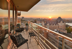Experience the epitome of luxury living at The Falls, an exclusive residence perched on the 16th floor in the dynamic Inner Harbour. Upon entering this expansive 2-bedroom + den suite, you'll be captivated by breathtaking views of sunsets over the Inner Harbour, the peaceful Strait of Juan de Fuca, or the majestic Olympic Mountains. This west-facing sanctuary provides a tranquil retreat with high end features including air conditioning and a wrap around balcony. Indulge in the sleek, contemporary kitchen equipped with premium appliances, or relax in the spa-like bathroom featuring heated stone floors, marble walls and and a stylish cast iron tub. The property also boasts an...