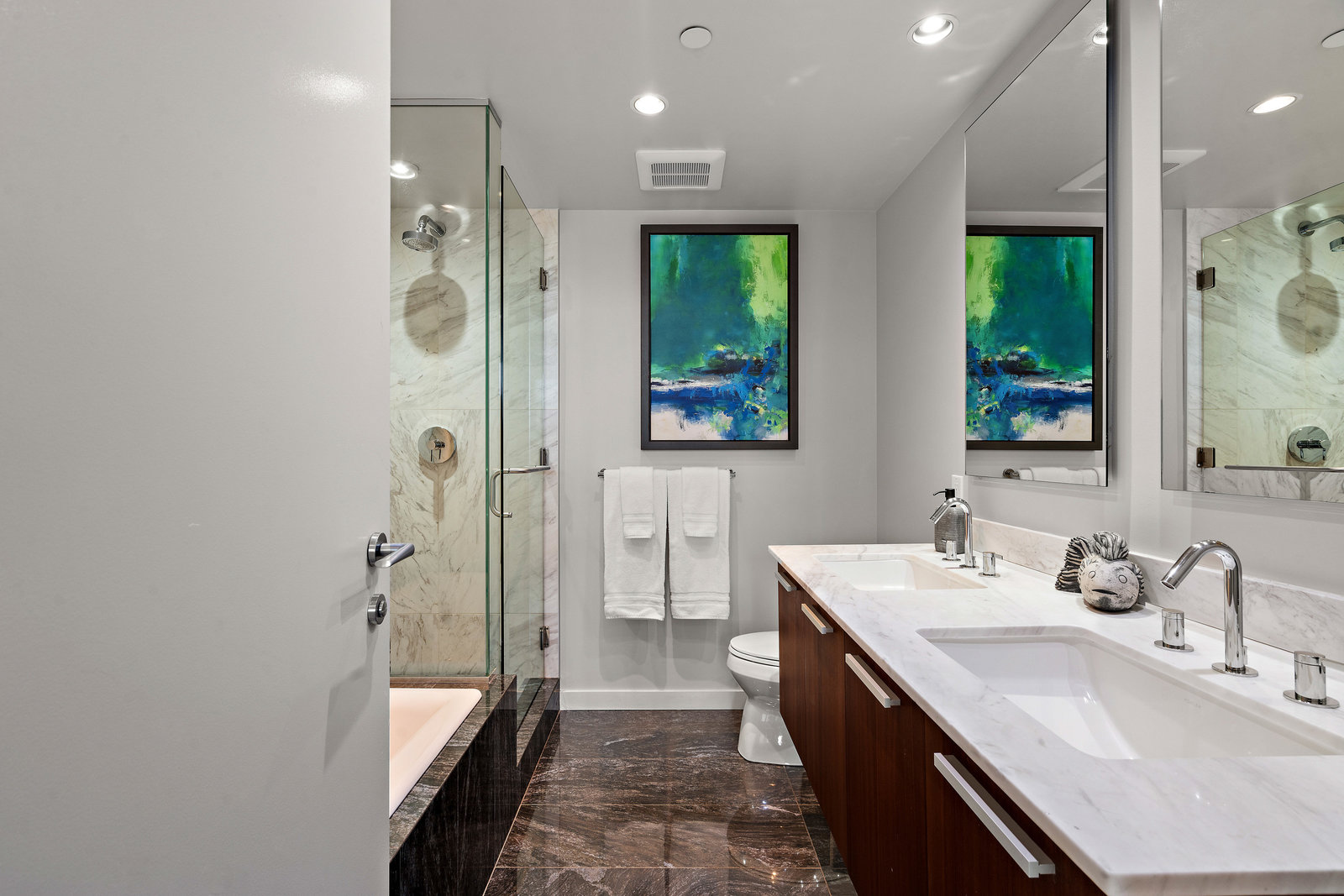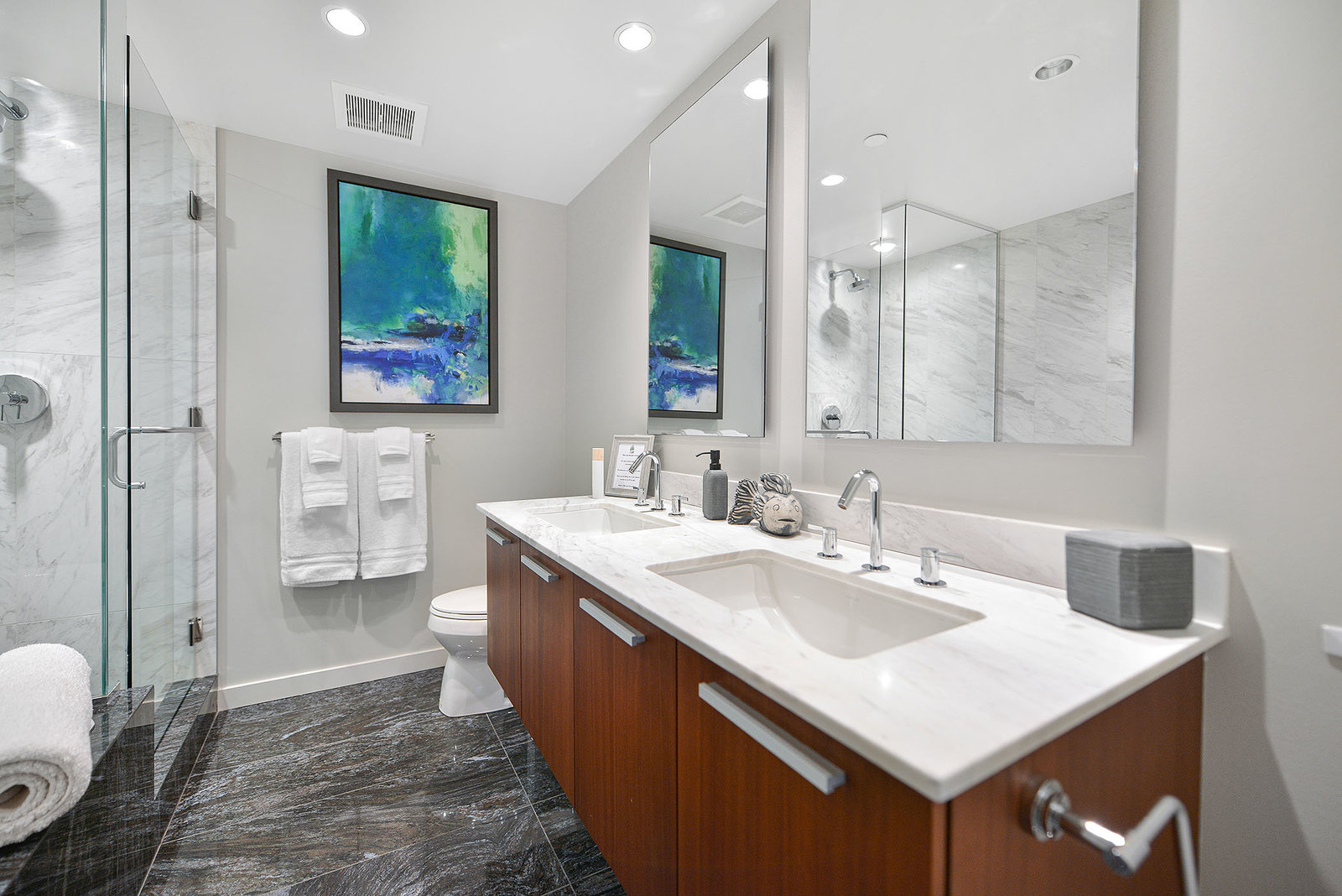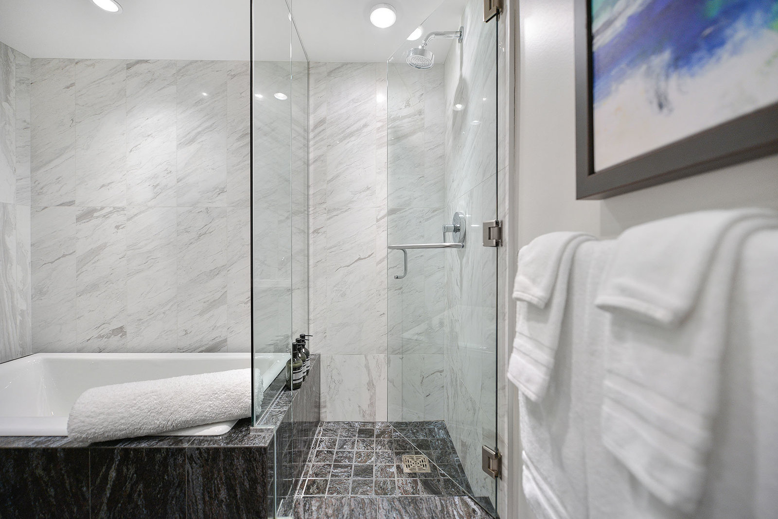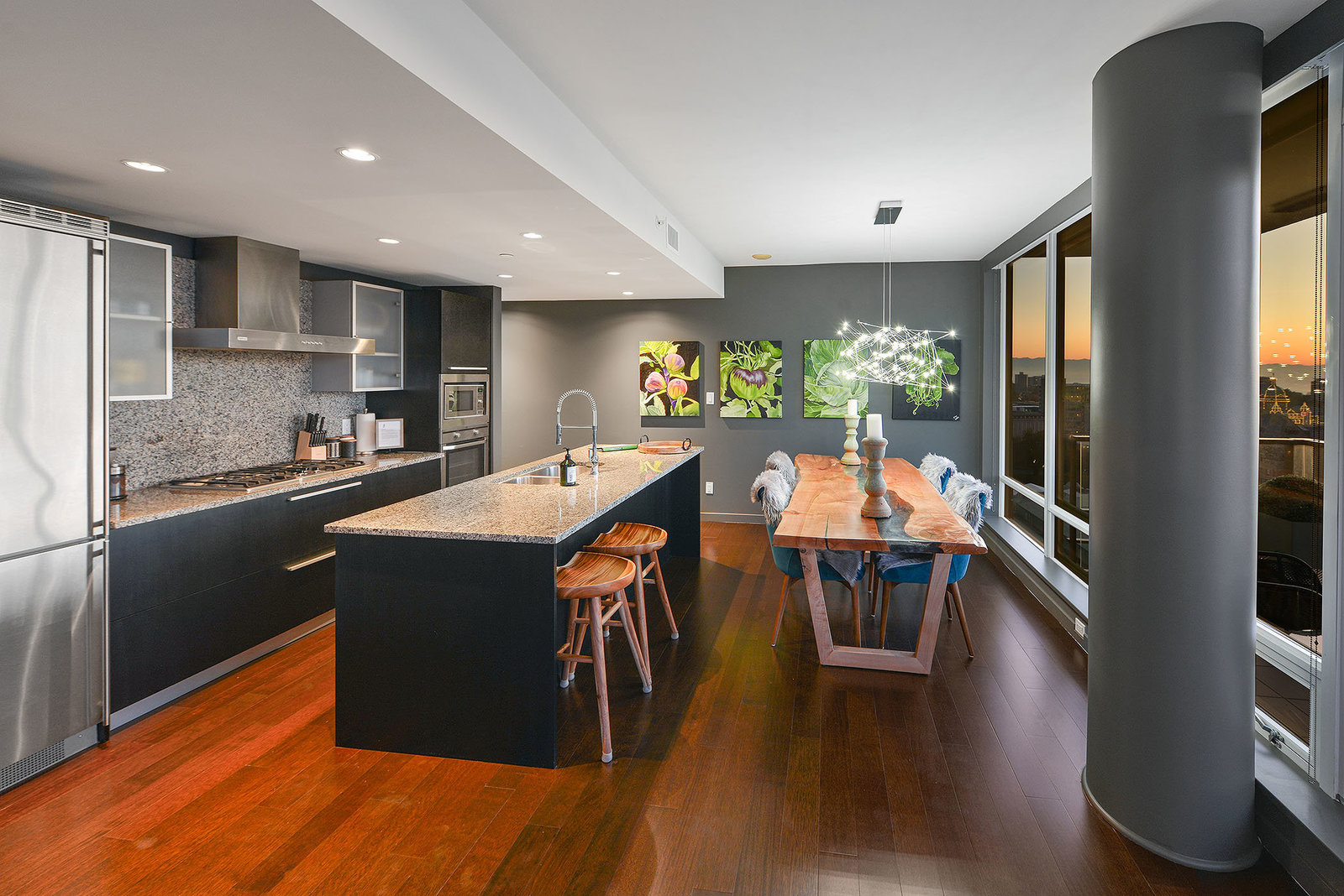Experience the epitome of luxury living at The Falls, an exclusive residence perched on the 16th floor in the dynamic Inner Harbour. Upon entering this expansive 2-bedroom + den suite, you'll be captivated by breathtaking views of sunsets over the Inner Harbour, the peaceful Strait of Juan de Fuca, or the majestic Olympic Mountains. This west-facing sanctuary provides a tranquil retreat with high end features including air conditioning and a wrap around balcony. Indulge in the sleek, contemporary kitchen equipped with premium appliances, or relax in the spa-like bathroom featuring heated stone floors, marble walls and and a stylish cast iron tub. The property also boasts an...