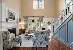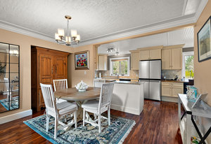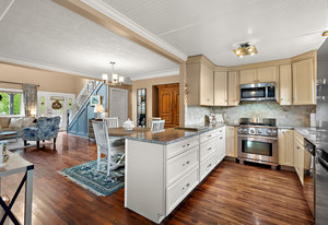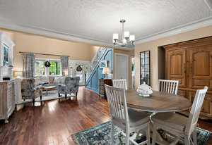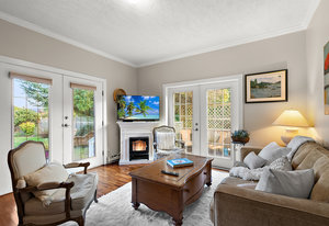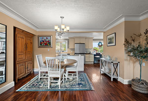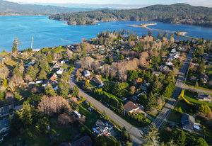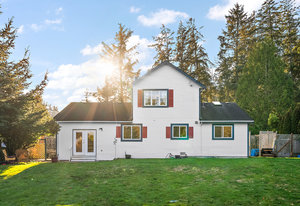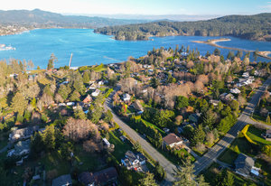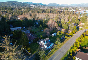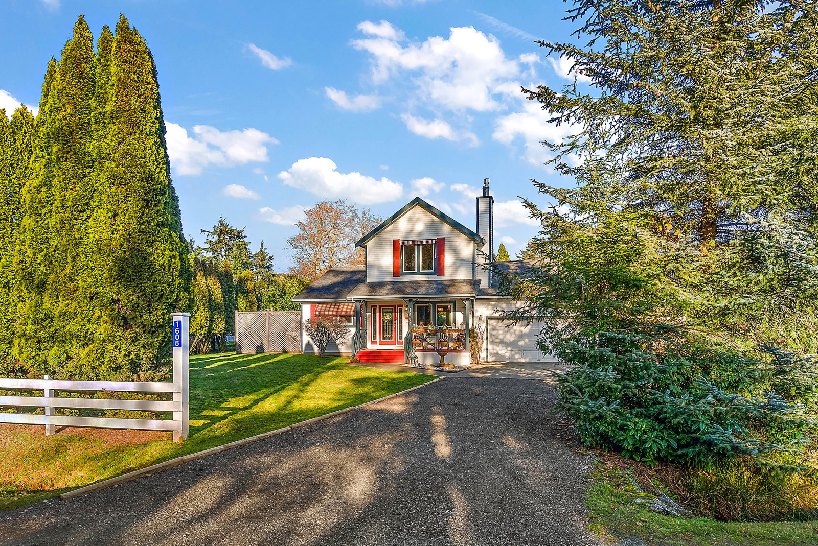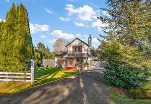 This quintessential farmhouse sits beautifully on a sunny half acre just a 5 min stroll from the Whiffin Spit waterfront! The cute front porch leads into the formal living room w/ vaulted ceilings, fireplace & lots of light. The open concept main floor features walnut floors, crown mouldings & is wheelchair accessible. From the spacious kitchen there is a sunken family room w/ French doors leading to the patio area which extends out to the beautiful flat, fully-fenced yard. The main floor also boasts two beds, two baths, laundry, garage, two patios & a deck! Upstairs is reserved for the spacious primary suite w/ ensuite & a private sitting area w/ ocean views! This comfortable home ...