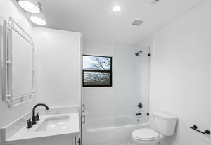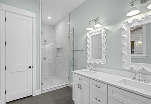 The large kitchen is truly a chef's delight, equipped with top-of-the-line stainless steel appliances and quartz countertops that provide ample prep space for all your culinary adventures. Three spacious bedrooms each feature their own frameless glass showers and walk-in closets that offer plenty of storage.