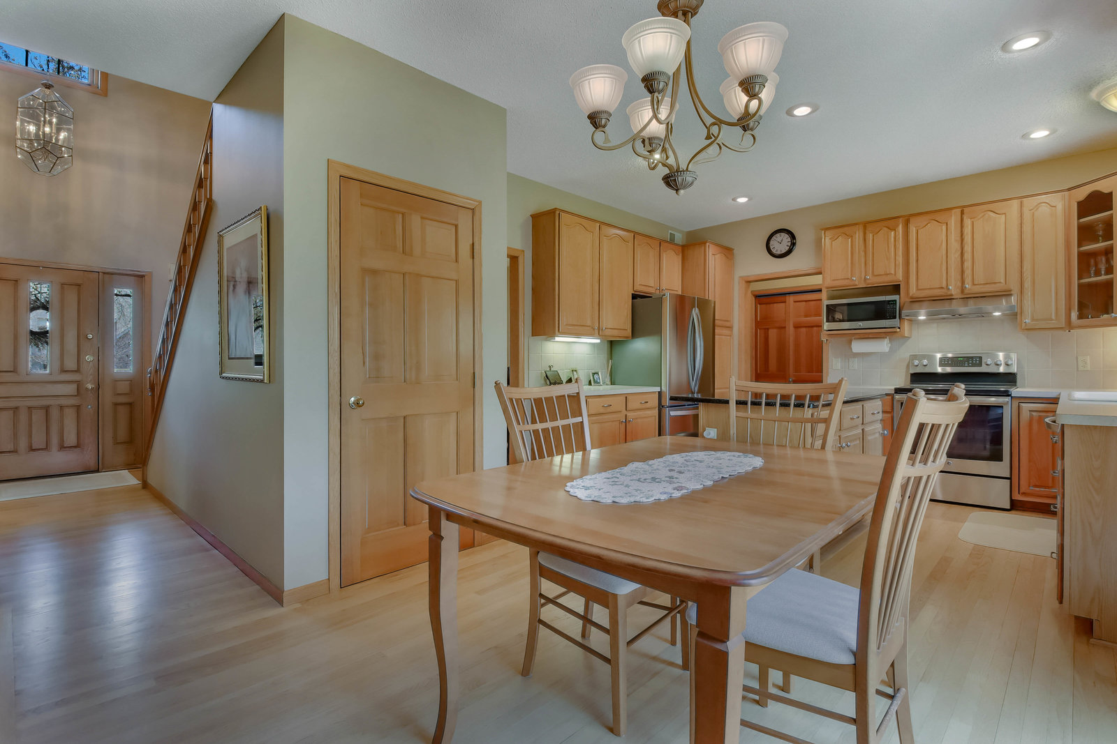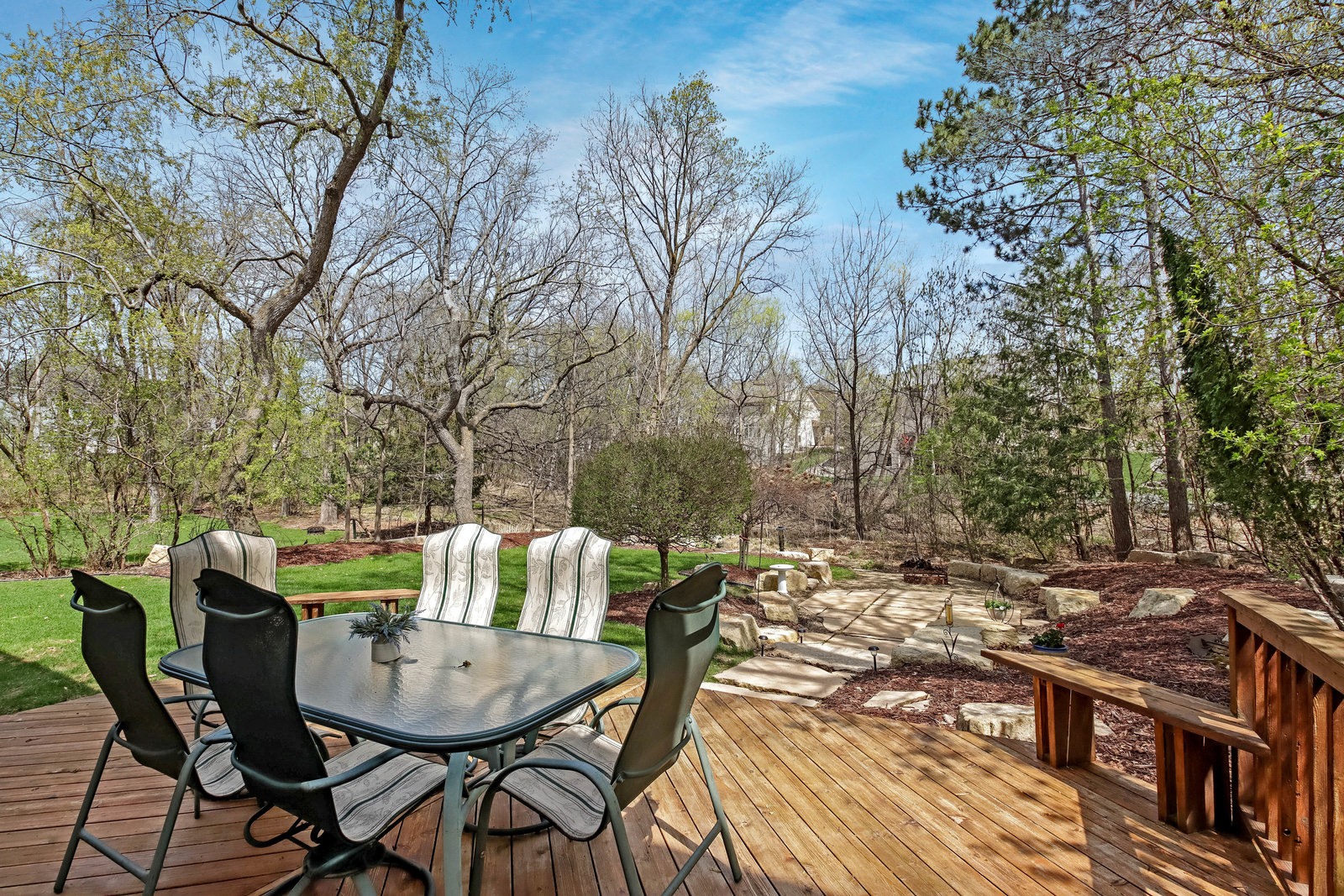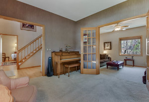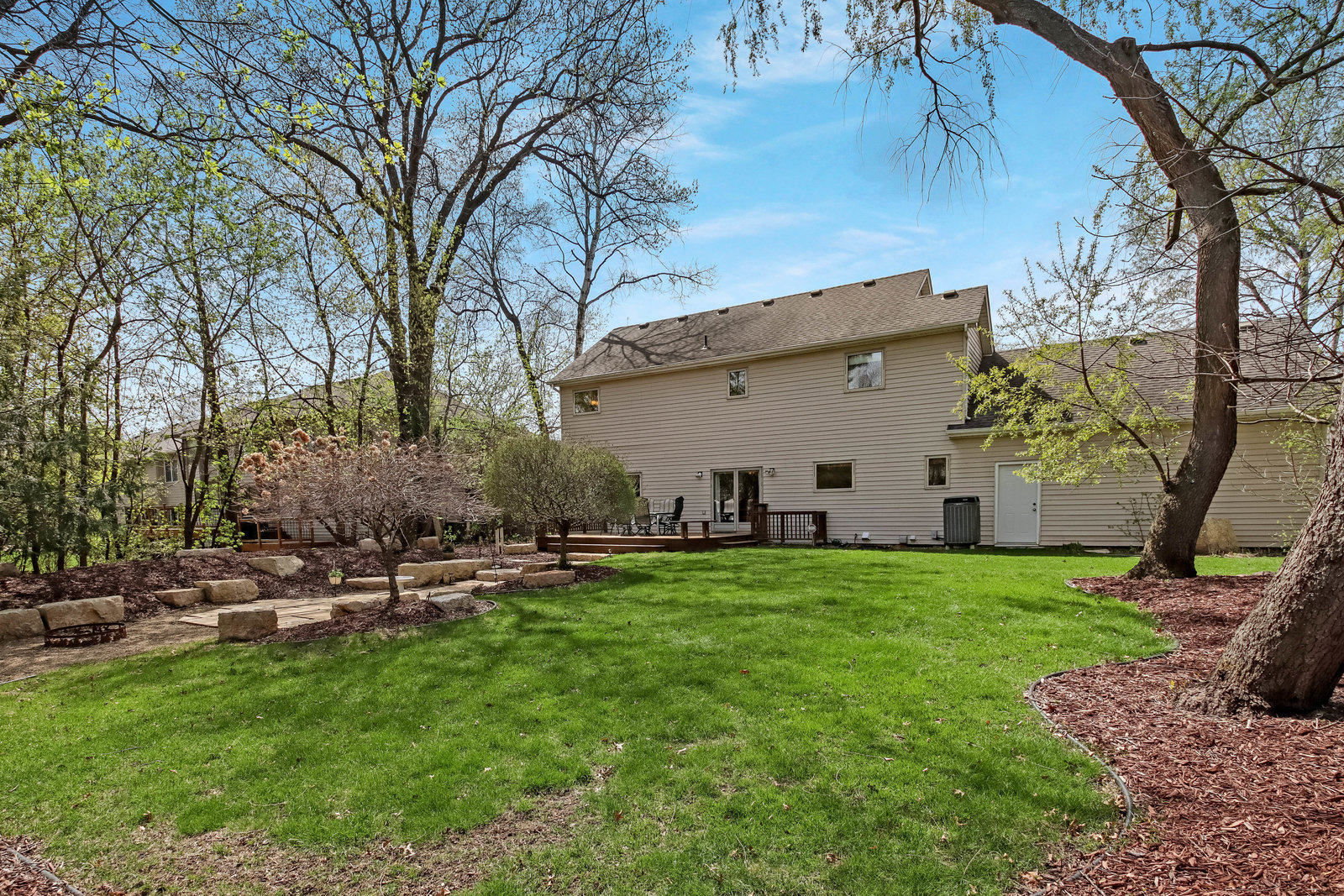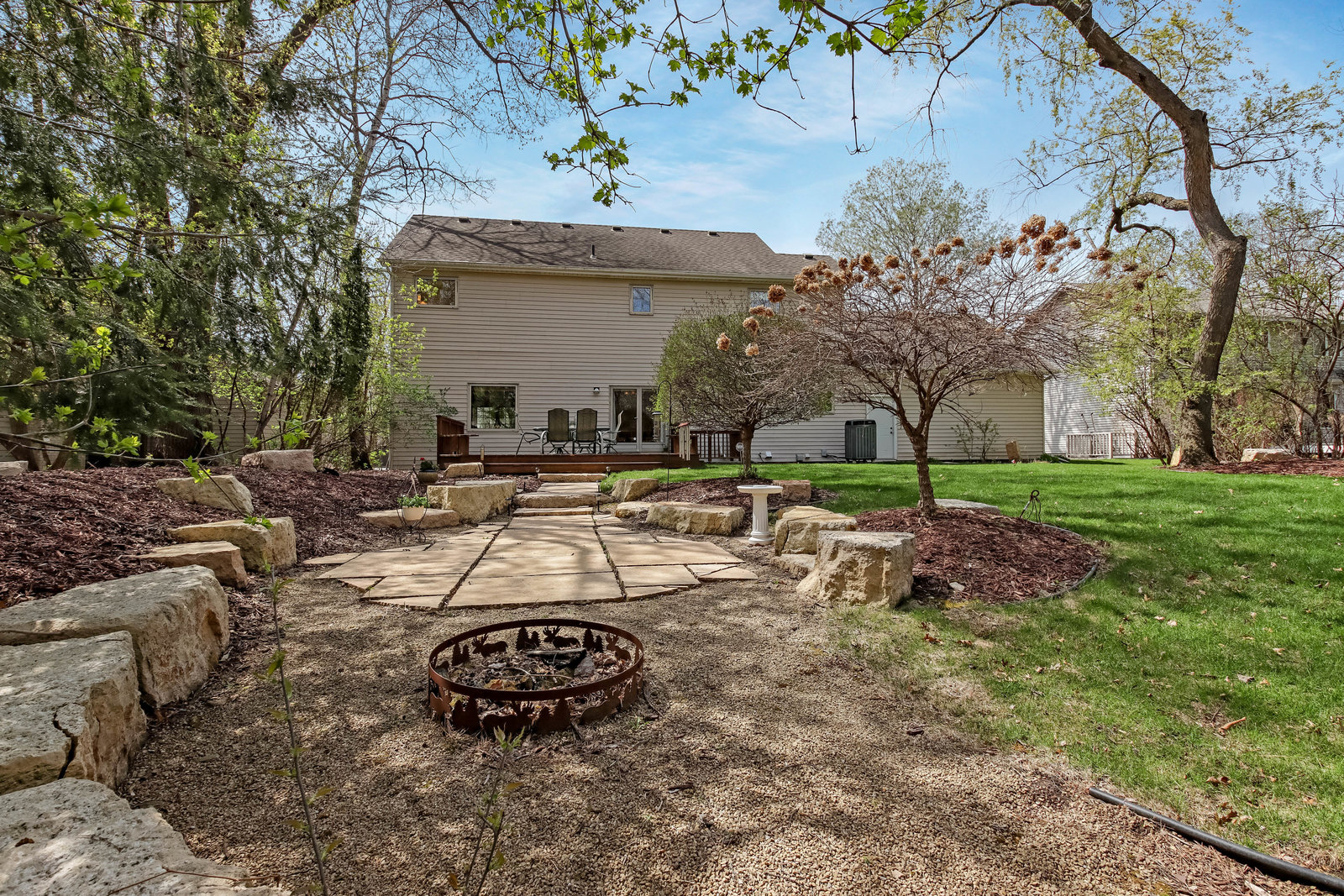 Wow! Look at this immaculate 3-Bed/ 4-Bath classic 2-story in charming Lynwood North! Meticulously cared for & in move-in condition! Walk-up to the large front sitting porch & enter the home to beautiful, refinished hardwood floors & 2-story foyer! Formal dining area with hardwood floors & formal living room with neutral pile & French doors to family room. Spacious kitchen with hardwood floors, stainless steel appliances, raised panel cabinets, center island with Cambria, drop desk area, recessed lighting & open to informal dining area & main floor family room! Main floor laundry room with sink & folding table & main floor half bath! Oversized two car garage with storage shelves! Step out the back door to serenity & privacy! Spacious deck overlooks wooded privacy & gorgeous back yard! Step down to your lighted natural stone patio with sitting stones & a fantastic firepit area! Great for entertaining or touching base with nature! Upper level with large primary ensemble suite! Oversized bath area, double sinks, jetted tub & separate shower! Oversized walk-in closet with built-ins! Two other spacious bedrooms with neutral pile & overhead lighting! Lower level with 2 large living areas, recessed lighting, neutral carpet, egress window with potential for another bedroom! Lower level ¾ bath with ceramic floor & step in shower! Marathon water heater, air exchanger, humidifier, Hepa filter, central vac, high efficiency furnace, radon system, sump pump, six panel doors thru-out, storage area, & so much more! This home has it all!