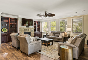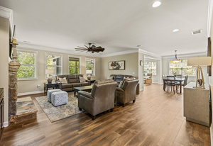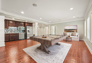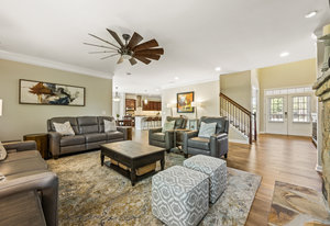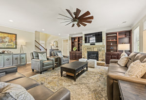Nestled on a quiet cul-de-sac in the Peyton Farm neighborhood, in the ideal location just a mile from Downtown Alpharetta, this meticulously maintained 6-bedroom, 5-bath home offers the perfect balance of luxury, comfort, and convenience. Thoughtfully upgraded and move-in ready, this home features a sunlit open floorplan with a seamless flow to the fireside family room. For summer entertaining and dinner parties - there is a formal dining room with a tray ceiling as well as an informal dining area next to the stunning gourmet kitchen with Cambria quartz counters, marble tile backsplash, stainless appliances, island with seating and a hidden walk-in pantry. A light-filled sunroom that opens to a screened porch is perfect for guests year-round. Completing the main level is a full bedroom and bathroom currently used as a home office. Upstairs, the oversized Primary Suite stuns with a tray ceiling, owner’s retreat with fireplace, a spa-inspired bath with a soaking tub and dual vanities, and a custom closet, complete with packing table. Three generously sized bedrooms complete the top level. This home offers three full levels of living space with a finished basement that includes a full bedroom, full bath, media room and kitchenette. The enclosed terrace level patio overlooks the fenced, landscaped, and private backyard. Numerous upgrades include: newer roof, gutter guards, light-commercial water heater and newly installed carpet. Zoned for...