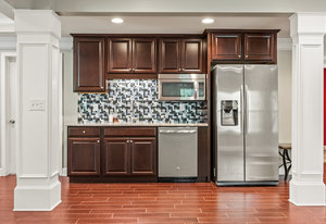 - Updated kitchen with Cambria quartz counters and marble backsplash