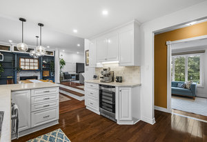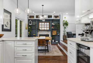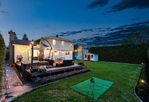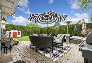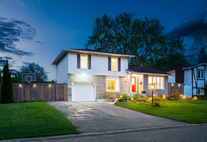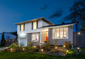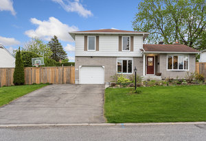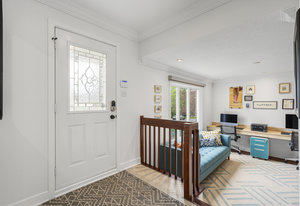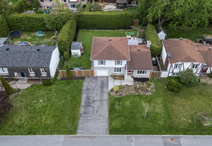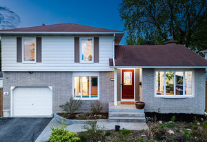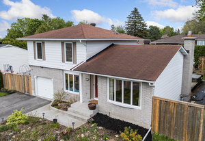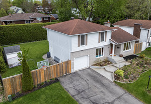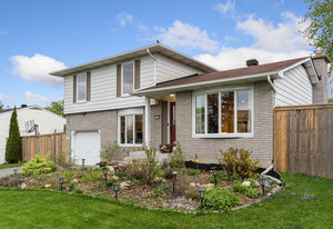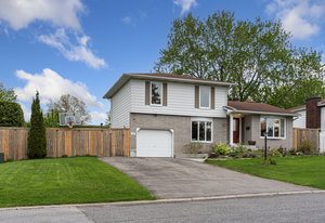 Welcome to 16 Langholm Crescent in the heart of Old Barrhaven. This charming two-storey home with an attached garage exudes character and has been lovingly updated throughout with impeccable pride of ownership and over 100K of recent updates and renovations. The manicured front and back gardens are framed by perfectly trimmed cedar hedges, offering both privacy and curb appeal. Inside, stylish upgrades include herringbone tile in the entryway, crown moulding, pot lights, and chic accent walls. The bright kitchen features a breakfast bar, built-in beverage center, coffee station, and modern lighting. The dining room offers a cozy fireplace with custom-built-ins and access to the backyard. A dedicated office with dual built-in desks and additional living space rounds out the main floor. Upstairs, find wainscoting in the hallway, a spacious primary suite with a sleek accent wall and ensuite, plus two more generous bedrooms and a full bath. The finished basement is perfect for a home gym or golf simulator. Enjoy the large deck, hot tub, and private yard ideal for entertaining! Irrigation system (2022), new hardwood flooring upstairs (2022), new baseboards & trim upstairs completed in 2025, main bathroom (2025), main floor (2025), furnace (2024), A/C (2024), Hot water tank - owned (2024). From here, you are around the corner from all the amenities of Barrhaven, a quick commute to the highway, and proximity to parks and schools.