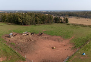 The property presents a picturesque rural setting with minimal area commercial development, ensuring privacy and serenity. Its long access lane leads to an elevated position with breathtaking water views of Pownal Bay, setting the stage for a tranquil yet strategic investment locale. Approximately 7 acres of meticulously fenced paddock areas, as well as walking and riding trails, provide a pastoral charm that complements the commercial prospects of the site.