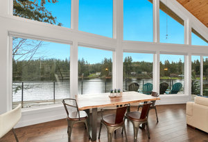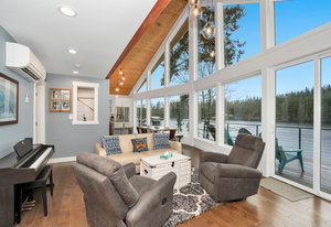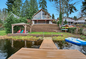 Step inside and experience stellar architectural design, soaring vaulted ceilings, and panoramic views. Designed to bring the beauty of the outdoors inside to you. Watch the eagles fish right from your living room, slide the door to the full length deck, enjoy the private dock and water toys, chill in the gazebo, or just relax and stream your favorite shows inside. A great escape while still being close to all the action!