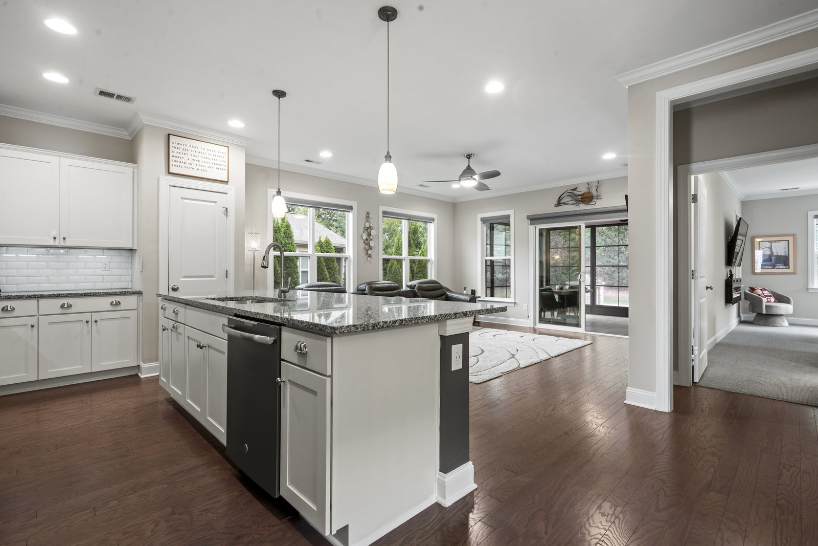 Move in ready, private lot and immaculately maintained, this light and bright split 2BR, 2BA home features a well-appointed kitchen anchoring the main living area. SS appliances, granite countertops, tile backsplash, beautiful light craftsman style cabinetry, under/over cabinet lighting, island breakfast bar, refrigerator and pantry. Large dining area adjacent to the great room which is highlighted with an electric fireplace and sliding glass doors that open to the EZE Breeze/screened lanai (heated/cooled) that flows to an extended paver patio with private wooded natural views. A serene primary suite completes this home also features an electric fireplace and ensuite bath with dual sink vanity, generous walk-in custom closet and tiled shower. Crown molding, newer carpet, custom blinds, low maintenance wood and tile floors throughout the home. Refrigerator, washing machine/gas dryer (both brand new), window treatments, 3 wall mounted televisions, 2 wall mounted electric fireplaces, gas grill all remain. 1 car extended garage has additional space for a golf cart & storage plus a widened driveway for ease of use. Gutter covers for easy exterior leaf maintenance. Trilogy Membership includes Freedom Boat Club on Lake Norman plus award winning amenities.