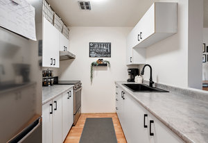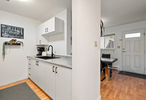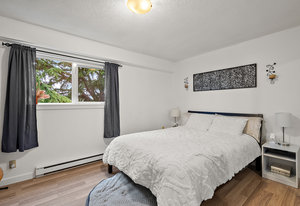 Charming 2-bedroom Condo with a townhouse feel in a prime location. This 2-level unit has modern updates and provides space and a feel you cannot get in today's new condo market. The main level offers a large dining area with a galley kitchen and a freshly painted bright living room with a sliding door leading onto your balcony. The upper level has 2 spacious bedrooms and a large 4-piece bathroom with a tub. Walking distance to shopping, restaurants and Mayfair Mall the location cannot be beaten! The monthly strata fee also includes heat and hot water! This unit would be awesome for a young family or professional couple. Come see this unit today!
