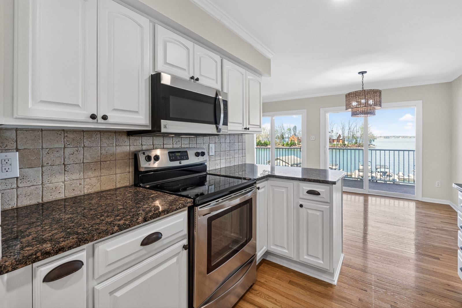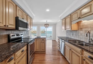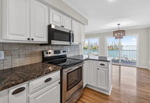 Residence #404 is one of the very select homes within Harborgate that enjoys this remarkable long-range perspective, offering sweeping panoramic water views from the main living areas and private balcony. The ever-changing lake scenery—from peaceful morning reflections to vibrant sunset skies—becomes part of the experience of living here.