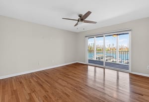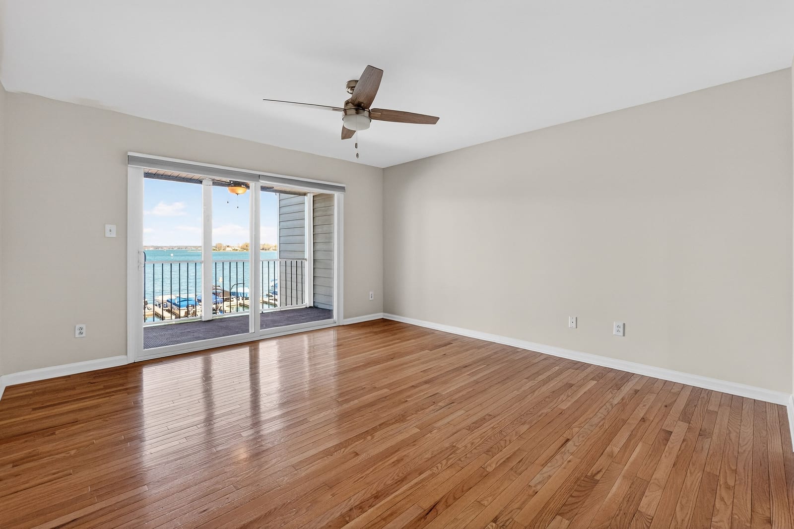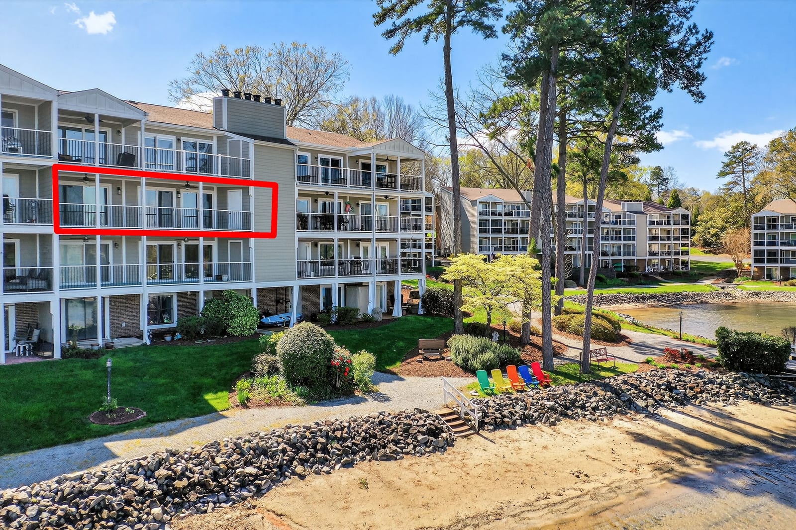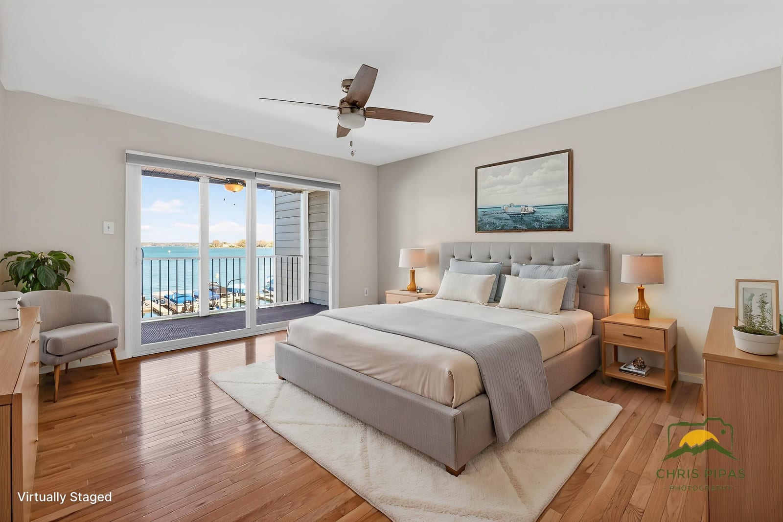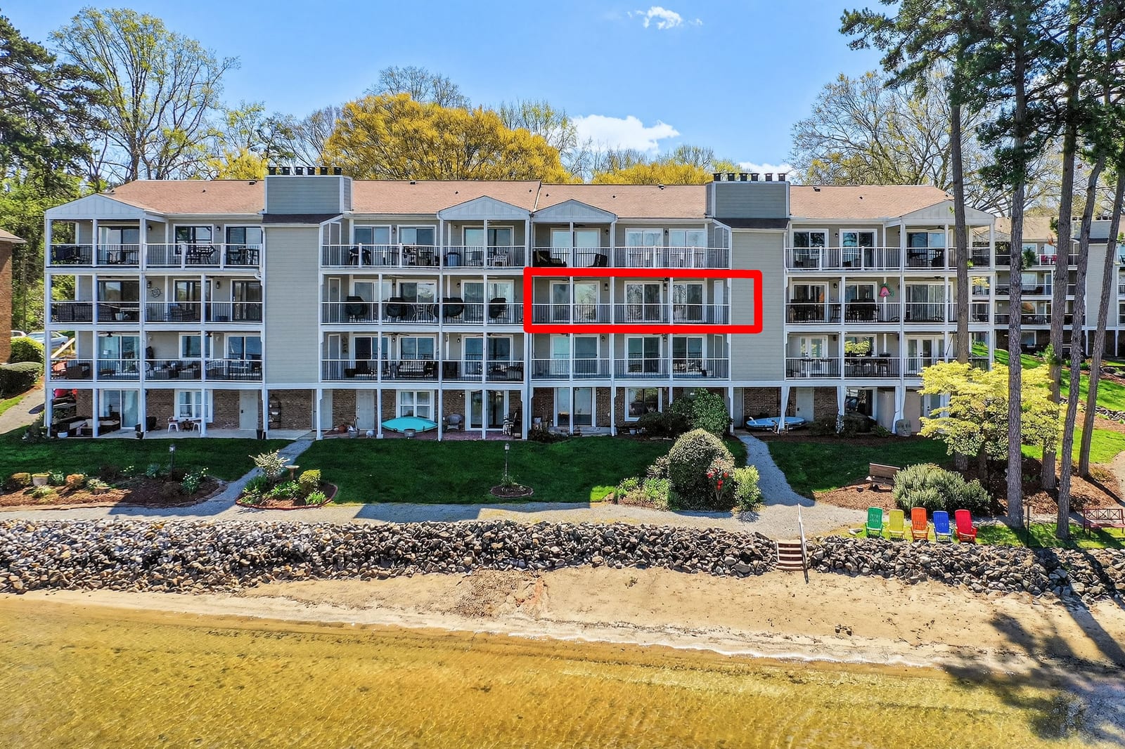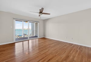 Inside, this two-bedroom, two-full-bath residence features gleaming hardwood floors throughout and fresh interior paint, creating a bright and welcoming interior. The open living and dining areas are designed to embrace the lakefront setting, drawing your eye directly toward the water, while the lakeside balcony provides the perfect place to relax, entertain, or simply enjoy the expansive views.