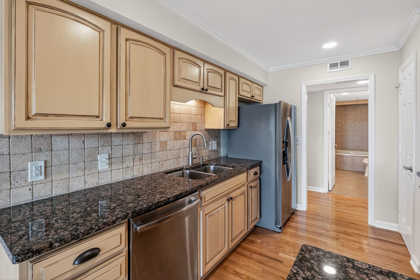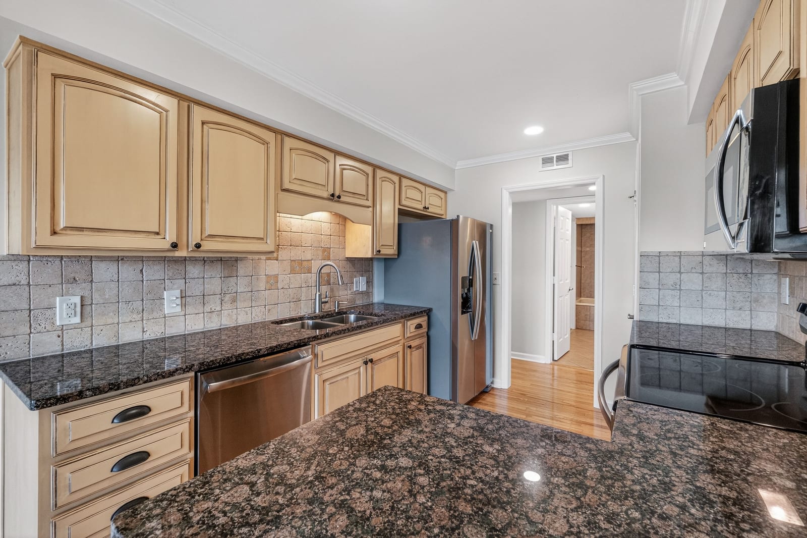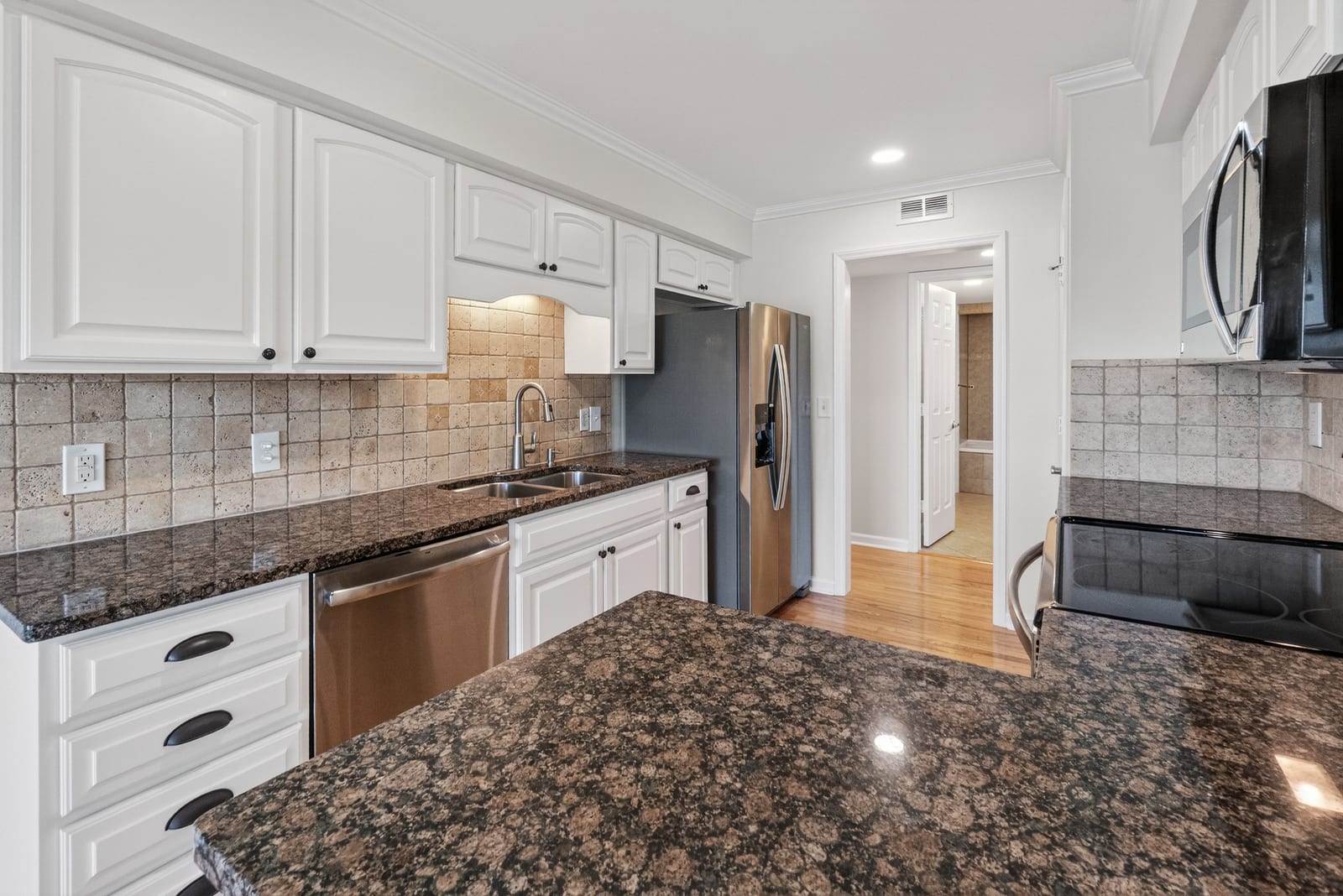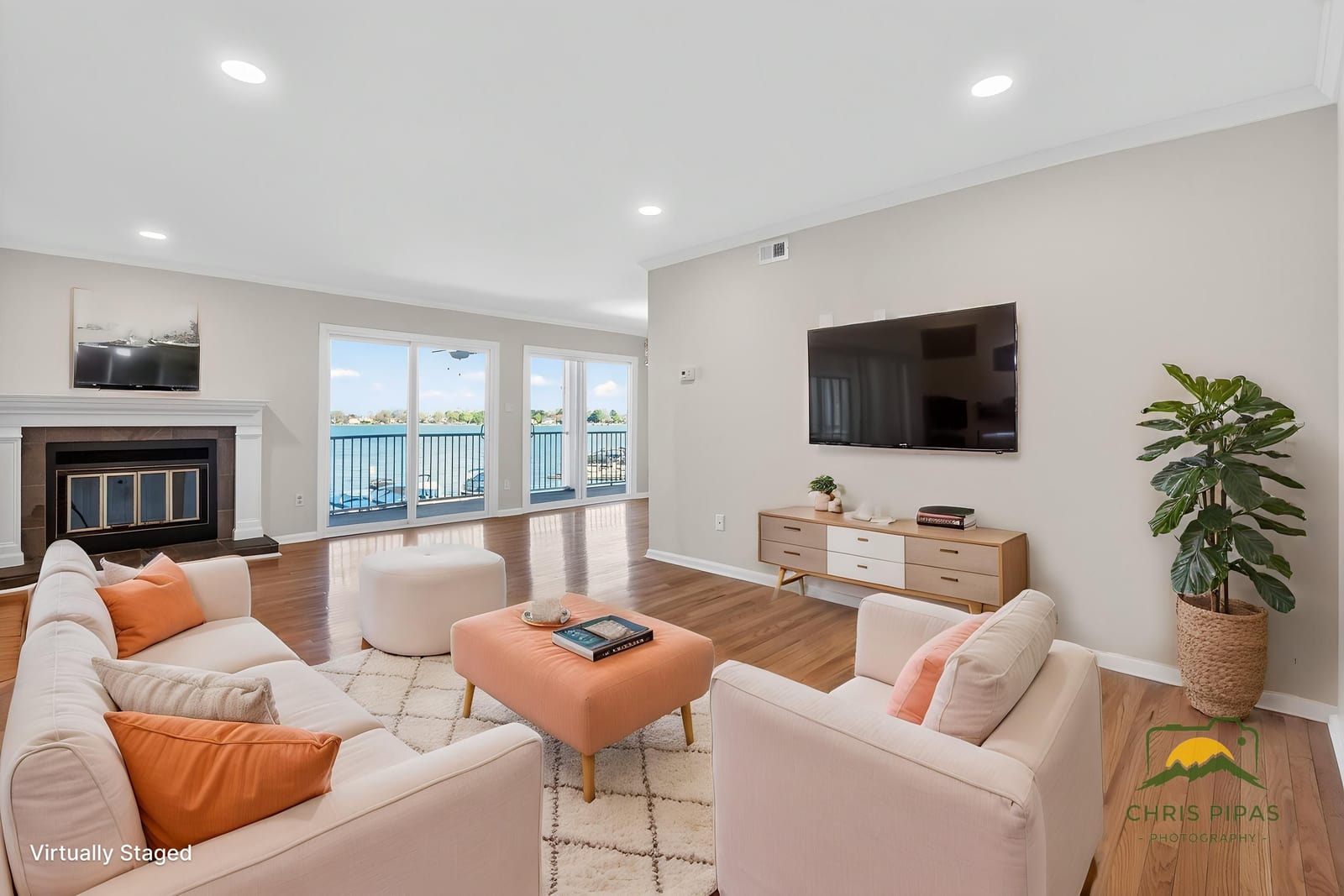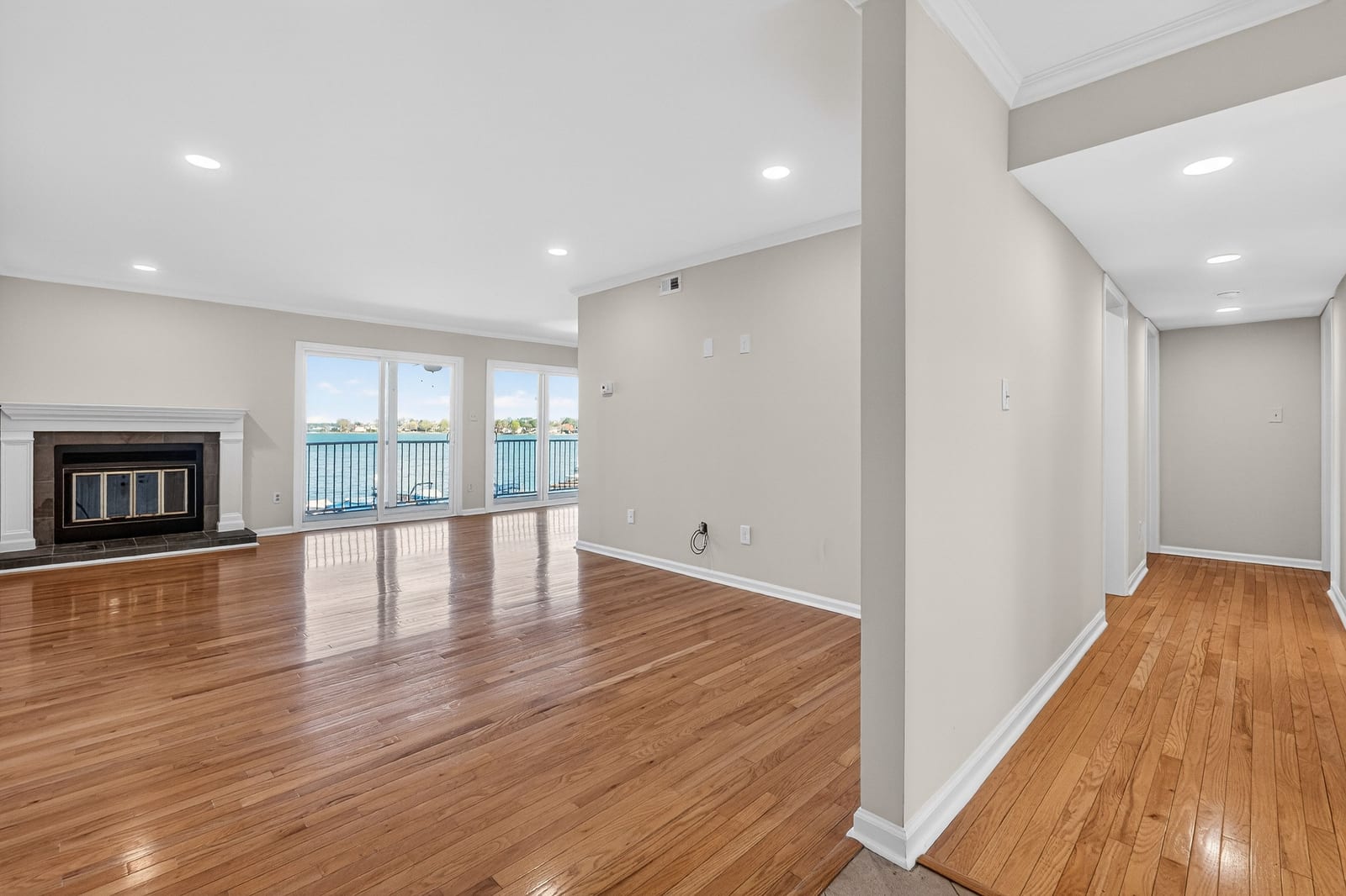 Inside, this two-bedroom, two-full-bath residence features gleaming hardwood floors throughout and fresh interior paint, creating a bright and welcoming interior. The open living and dining areas are designed to embrace the lakefront setting, drawing your eye directly toward the water, while the lakeside balcony provides the perfect place to relax, entertain, or simply enjoy the expansive views.