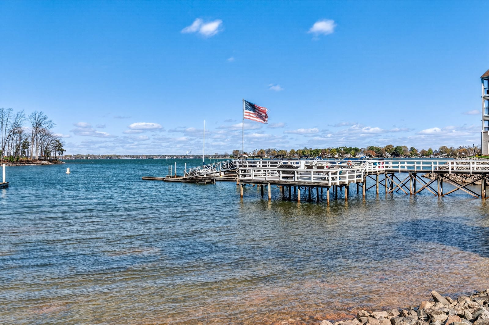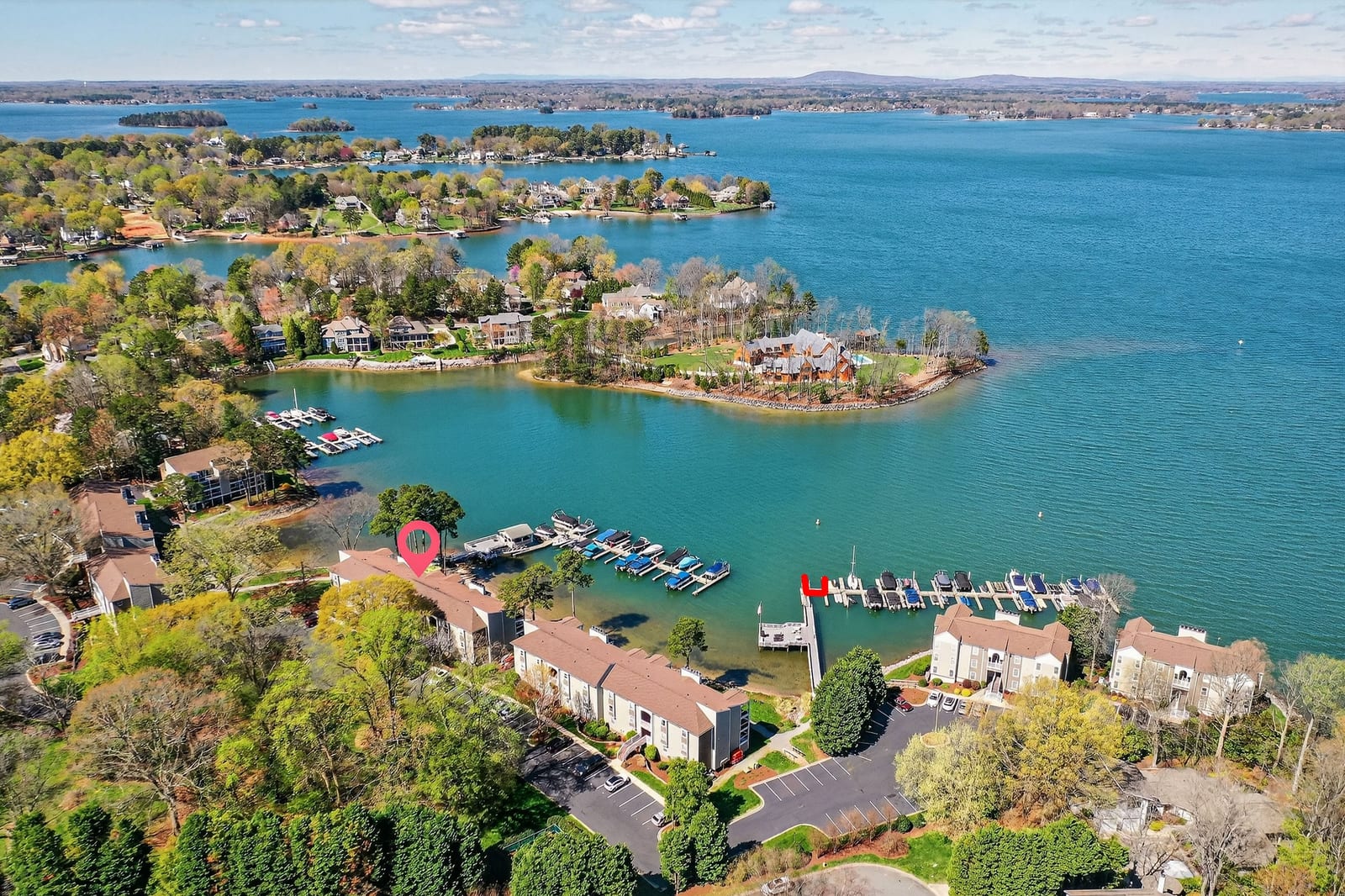 Big-water views are among the most coveted perspectives on Lake Norman—and Residence #404 delivers one of the most breathtaking. Positioned in one of the few locations within the highly desirable Harborgate community where unobstructed sightlines stretch across the lake, this exceptional waterfront condominium captures approximately three miles of open-water views, creating a truly rare and dramatic backdrop for everyday living.