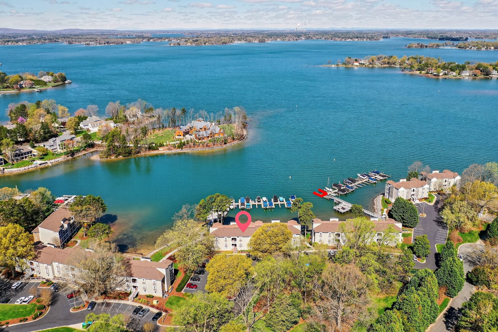 Equally important for lake lovers, the property includes a deeded boat slip located just a short walk from the building, offering convenient and immediate access to Lake Norman. Boat slips in this area are highly desirable and can represent significant value—often around $50,000—making this an exceptional opportunity for buyers seeking both a stunning view and true lake access.