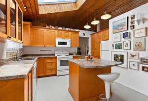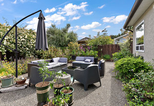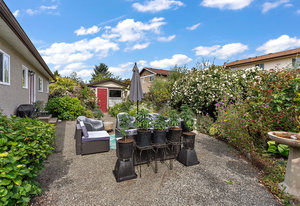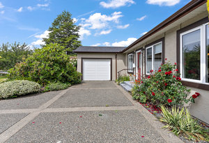 Charming 3-bedroom, 2-bathroom plus den rancher nestled near Sidney’s many amenities. This impeccably maintained single-level home features spacious, lofted tongue-and-groove ceilings, large windows, and skylights that create a bright and airy atmosphere. Offering 1,546 square feet of living space, it features a generous living room, a cheerful kitchen with wood shaker cabinets and tile flooring, as well as a separate dining area. The primary suite is spacious and includes a private 3-piece ensuite. Enjoy outdoor living with beautifully landscaped gardens, a dedicated garden studio, and a private patio perfect for relaxing outdoors. Additional highlights include an oversized single-car garage...