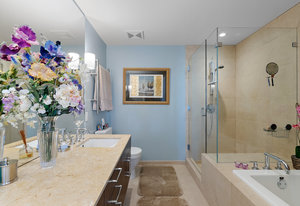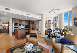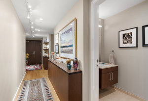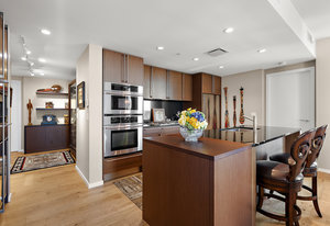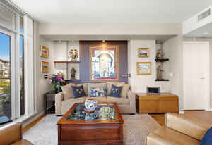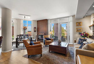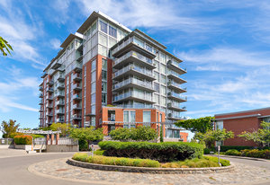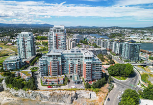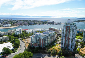 Discover sophisticated urban living in this exquisite 1,538 square foot residence at Bayview One, one of Victoria's most prestigious condominium developments. This thoughtfully designed two-bedroom, three-bathroom home showcases premium finishes including engineered Kentwood floors and extensive custom Wenge cabinetry throughout. Both of the generously proportioned primary suites feature expansive walk-in closets with extensive custom closet organization systems, a custom desk and bookcase office area with peek-a-boo water view, a library wall with lighted display cabinets, plus luxurious five-piece spa-inspired bathrooms. The gourmet kitchen serves as the heart of the residence, equipped with premium Jenn-Air, Bosch & DCS stainless steel appliances, complemented by a custom-integrated Miele coffee centre and wine refrigerator. The living room features stunning illuminated Wenge display shelves and a Napoleon linear fireplace with hidden TV cabinet and pivot mount. Includes an over-sized storage unit conveniently located adjacent to the assigned parking stall. Residents enjoy an exceptional array of building amenities, including concierge service, a state-of-the-art fitness facility, rejuvenating steam rooms, whirlpool, and an elegant entertainment lounge complete with billiards table. The outdoor terrace features barbecue facilities and provides the perfect setting for al fresco dining and relaxation. The location offers unparalleled convenience, with downtown Victoria and the scenic Songhees Waterway just a leisurely five-minute walk away. This pet-friendly residence welcomes up to two companions. Experience the pinnacle of waterfront luxury living at Bayview One.