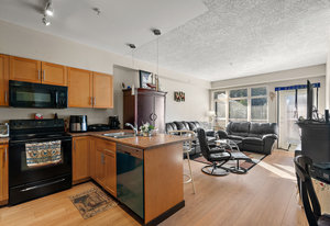 Welcome to this gorgeous 2-bedroom, 2-bathroom condo at The Copperwood in Hatley Park. This property offers a modern open floor plan with a bright living area and a spacious kitchen featuring new hardwood floors, a brand new dishwasher along with stone countertops. Enjoy plenty of natural light from the large windows and high ceilings, as well as a southeast-facing balcony. The primary bedroom comes with a walk-in closet and a 4-piece ensuite. Additional features include in-suite laundry, ample closet space, one secure underground parking spot, and a separate storage area. The hot water tank has recently been upgraded as well. Located just minutes from walking and biking trails, Royal Roads ...