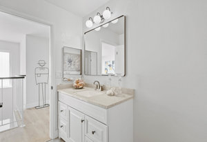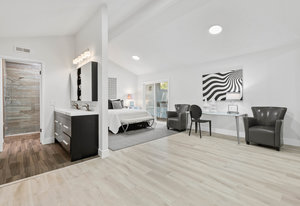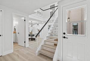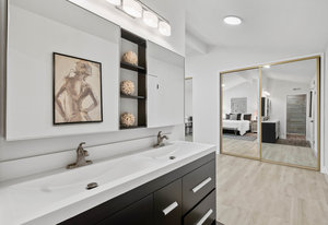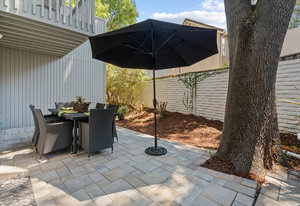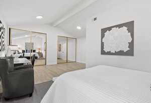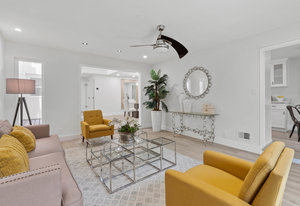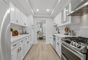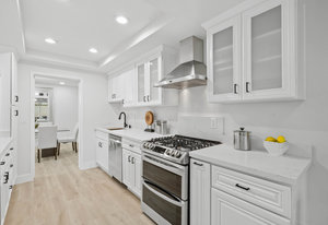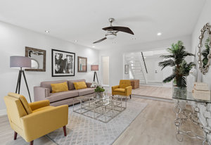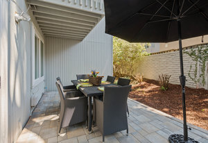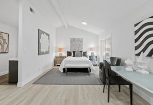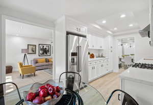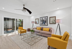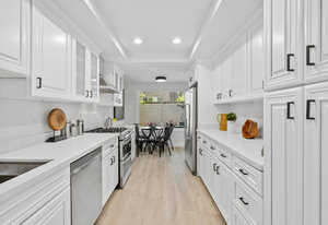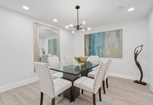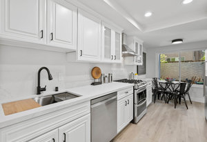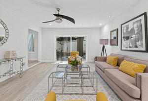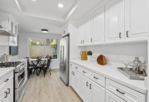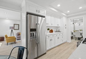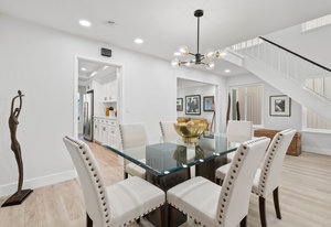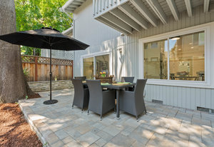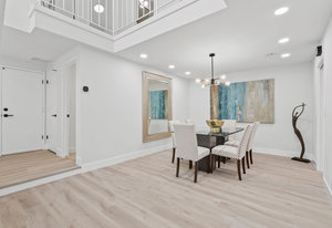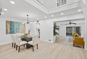 Double-height ceilings and a central atrium distinguish the layout, which includes generous living and dining rooms and an extensive paver patio. The remodeled kitchen offers new countertops and a breakfast ...