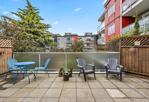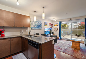 Price Reduced to SELL! Looking for a condo with a large outdoor space? Soak in all the morning sun from your private oversized patio (312sq ft) with views of the luscious courtyard! This lovely 2 bed, 2 bath suite offers a spacious kitchen with granite counter tops, stainless steel appliances an eating bar overlooking the living room and out to the expanded living space on your outdoor patio. The primary bedroom features a 4 piece ensuite, a large walk-in closet plus a second closet for tons of storage. Enjoy the ease of having your separate storage locker on the same floor just down the hallway. In-suite laundry and a second bathroom with full walk-in shower. Well-equipped fitness center in the building plus secure underground parking & bike storage. Prime location walking distance to the ocean, groceries, restaurants, CFB Esquimalt & transit. 5 minute drive or 10 minute bike ride to downtown Victoria. Building allows 2 Pets with no size restrictions.
