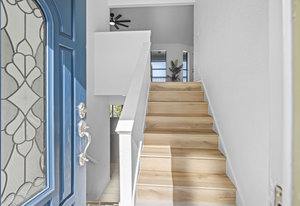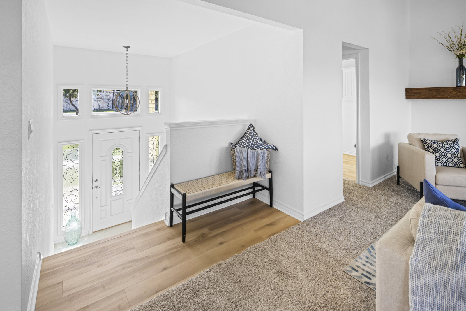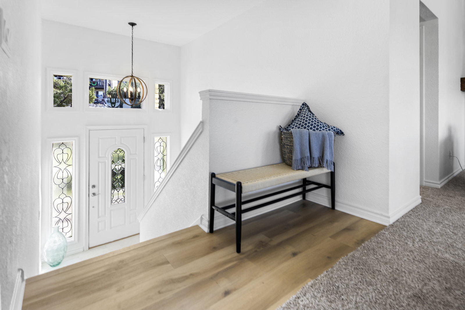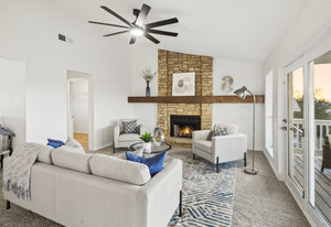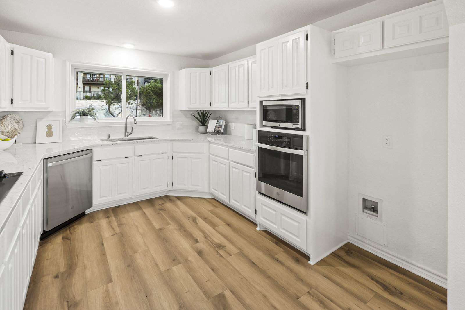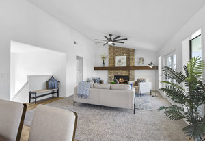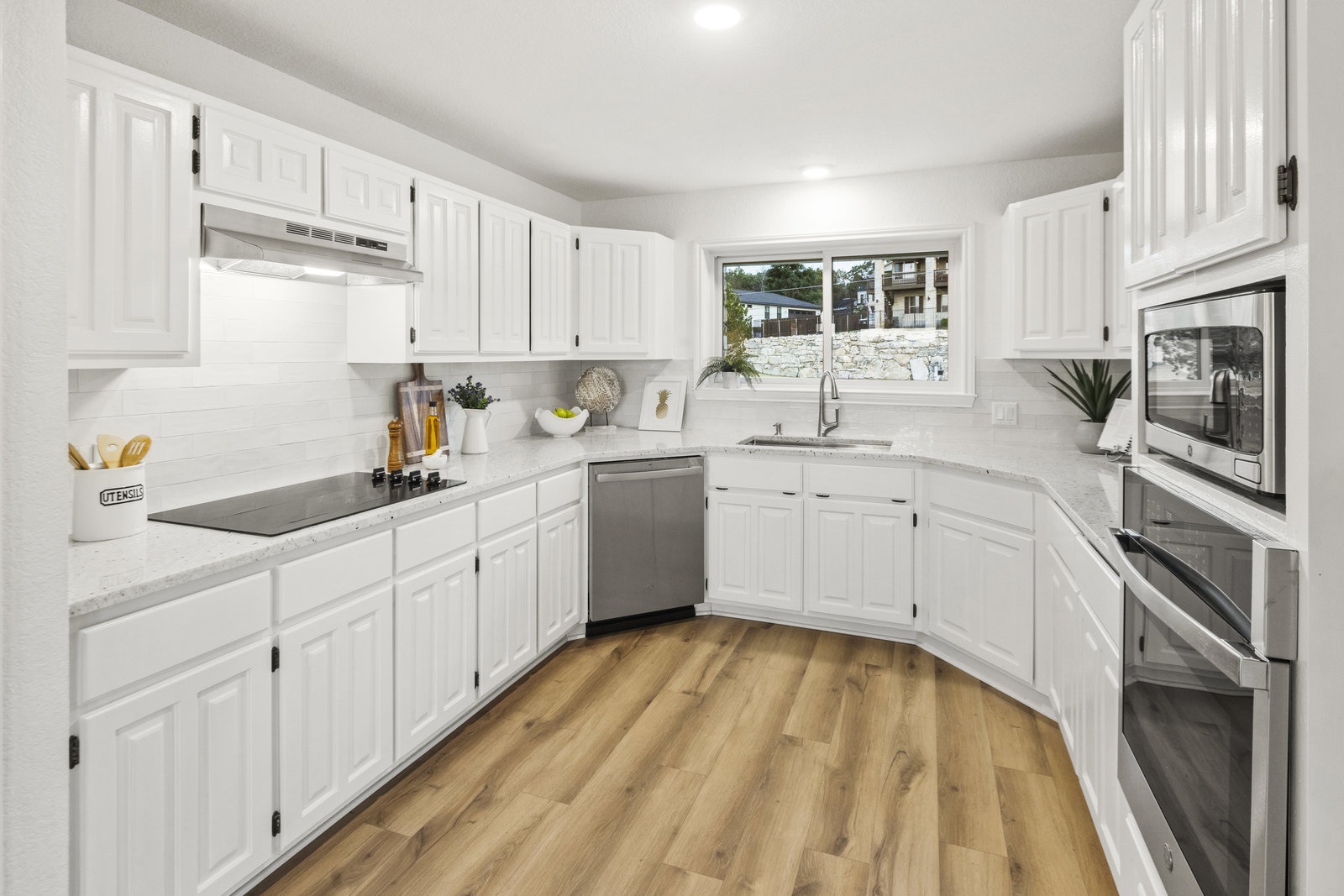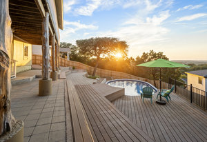 Beautifully updated 3 bedroom, 2.5 bathroom home on a large .336-acre lot with a private pool offering panoramic views of the Lago Vista Golf Course’s 15th fairway and green, Pace Bend Park, Lake Travis, and hill country sunsets! Set back from the street with a private extended driveway and a 2-car side-facing garage, this residence ensures both privacy and convenience. Step inside to an open-concept living space adorned with high vaulted ceilings and abundant natural light. The spacious living area features a modern ceiling fan and a floor-to-ceiling stone fireplace with a custom wood mantel, creating a warm and inviting atmosphere. Adjacent to the living area is a dining space highlighted by a stunning chandelier, perfect for entertaining guests. The chef’s kitchen boasts white cabinetry, quartz countertops, ample storage, and sleek stainless-steel appliances, making it a culinary haven just steps away from the dining area. Upstairs, the primary suite offers a serene retreat with a vaulted ceiling, two walk-in closets, and a private en-suite bath featuring a quartz-topped dual vanity and a luxurious jetted tub/shower combo. Both the living area and primary bedroom have direct access to the covered terrace, where you can unwind underneath the ceiling fans and take in incredible views of the Lago Vista Golf Course’s 15th fairway and green, Pace Bend Park, Lake Travis, and spectacular hill country sunsets. The expansive backyard is an outdoor oasis, complete with a terraced covered patio and composite decking that surrounds the private above-ground pool. The extended driveway provides ample parking space for RVs, boats, or jet skis, accommodating all your outdoor recreational needs. Other features include a recent roof, interior/exterior paint, lighting, appliances, fencing, drainage, water heater, and more. Situated on a large lot, this home offers unparalleled privacy and a prime location to enjoy stunning views and serene living. Schedule a showing today!