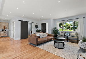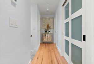 From the moment you enter, the home radiates quality with rich hardwood floors, exquisite custom millwork, and the comfort of in-floor radiant heating. The seamless open-concept design maximizes the southwest exposure, flooding the space with natural light. The heart of the home is the high-end chef’s kitchen, equipped with modern appliances and sleek cabinetry, which flows effortlessly into a sophisticated living room anchored by a cozy gas fireplace. French doors open onto a spacious, sun-drenched tiled deck—the perfect vantage point for al fresco dining and spectacular sunsets.