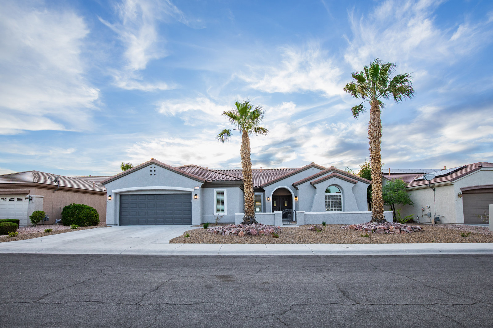 Amazing strip views from your oasis-style backyard or from inside your great room. Completely redesigned and reimagined very popular Arlington model in Sun City Anthem. This beautiful 1 story, 3 bedroom, 3 bathroom home has been completely remodeled. Oversized 2 car garage with storage and area for workshop. This model home has an inviting courtyard entry with complete landscape makeover. All new AC units and system. Unlike any other Arlington model, this home has a large open kitchen with new huge walk-in pantry offering a custom coffee bar and prep area. Stylish new custom cabinets, new elegant book-matched quartz counter tops with custom tile backsplashes, all new plumbing hardware, all ...