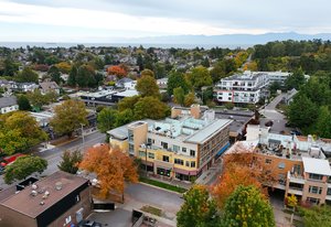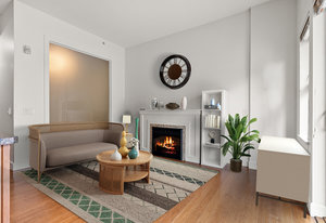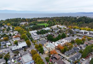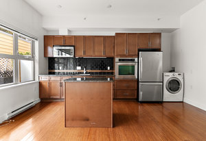 Welcome to Essencia Verde, where pet-friendly living meets the vibrant heart of Cook St. Village! This bright 1 bed, 1 bath condo offers soaring ceilings, oversized windows, engineered bamboo floors, and a spa-inspired tiled bath. The stylish kitchen boasts full-size stainless steel appliances, granite counters, and an island with storage—perfect for home chefs. Curl up by the electric fireplace or step out to your private 100+ sq ft patio, an ideal retreat for you and your four-legged friends. Built in 2010, the building features secure underground parking, bike storage, and a storage locker. Pets and rentals are welcome, making it a flexible and inviting place to call home. Steps to cafés, shops, and restaurants, and just a stroll to Dallas Rd waterfront, Beacon Hill Park, and off-leash green spaces. The perfect village lifestyle—for you and your pets!