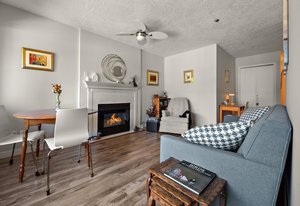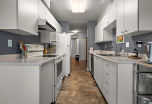 Inside This Gem: Kitchen Paradise: Generous, bright white kitchen with endless cabinetry, durable tile floors, and a charming breakfast nook featuring a stunning floor-to-ceiling window that floods the space with natural light Cozy Living: Spacious living room with ambient gas fireplace and patio doors leading to your private covered balcony - perfect for morning coffee or evening relaxation ️ Bedroom Retreat: Spacious primary bedroom with walk-in closet and contemporary shared ensuite bathroom finished in sleek, modern tile & marble vanity.