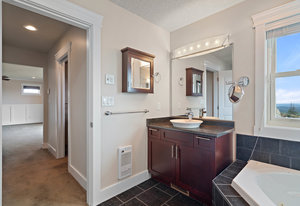 Nestled on a quiet cul-de-sac high on Bear Mountain, this luxurious home is the epitome of mountain style living. Offering stunning views and privacy, flooded with natural light, ensconced comfort, rich colours, fine wood finishing, this 4 bedroom home is a must-see! The open kitchen, gas range, and butler pantry makes any chef’s dream come true. On dark nights, the tall-flame gas fireplace surrounded by a handmade wood mantle creates the ultimate mood. Upstairs is a large inviting master bedroom with a private deck and a 5-piece ensuite. In addition to the two generously-sized bedrooms, is a bonus room—large enough for an office/media/workout or a 4th bedroom. The double-deep garage can accommodate three cars, or be partitioned for a workshop. Resort-style living gives accessibility to a private golf course, tennis, cycling, spa, fitness, shopping and dining all within walking distance, with downtown Victoria and Millstream Village are just a small drive away.