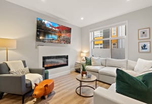 Welcome home to this bright, well-appointed 3-bedroom, 3-bathroom home offering 1,450 sq ft of comfortable living space plus an oversized 532 sq ft garage. The main level features an open layout with 9-ft ceilings, electric fireplace, and a chef-inspired kitchen complete with quartz countertops, stainless steel appliances with gas range, soft-close cabinetry, full-height pantry, tile backsplash, and a large island ideal for everyday living and entertaining. Added comforts include air conditioning, on-demand hot water, and cordless blinds throughout. Upstairs, the primary bedroom offers a walk-in closet and 4-piece ensuite, with two additional bedrooms nearby. Outside, enjoy a sunny south-facing ...