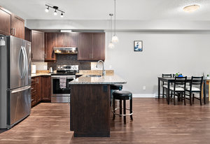 Sharpen your pencils and get ready to start checking boxes! This corner unit condo is over 1000 sq feet has 2 bedrooms and 2 full bathrooms, 2 secure underground parking spots, allows big dogs, is extremely bright and is located on the quiet side of the building! As soon as you enter the unit is apparent that you are visiting the largest floor plan in the building, the open concept is warm and inviting and the living/kitchen combo is fantastic for quiet evenings at home or entertaining friends and family. The primary bedroom is spacious and clean and includes a walk-through closet as well as a full 4 piece bathroom with tub. This condo is also located just moments away from Langford and Glen ...