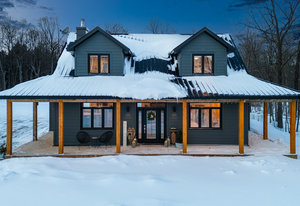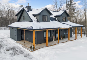 Welcome to 2167 Old Perth Road - a stunning custom-built home tucked away on a private treed lot, just minutes from Carleton Place and Almonte. This thoughtfully designed 4-bedroom + office home offers a seamless blend of luxury and practicality. Built with energy efficiency in mind, this home features an ICF foundation, upgraded spray foam insulation, and Hardie Board architectural concrete siding for durability and year-round comfort. A maintenance-free steel roof and premium windows and doors enhance the home's durability. The open-concept main floor features radiant polished concrete floors, an open-concept layout, and a cozy Quadra wood stove. The kitchen boasts stone countertops, a butcher block island with seating, and a built-in wine cooler. Enjoy the walk-in pantry with plenty of space for a freezer and water cooler. The generously sized main floor primary suite includes a walk-in closet, soaker tub, tiled shower, and access to a private side porch. An additional office and bedroom complete the main level. Upstairs, you will find two large bedrooms, another full bathroom, and a loft-style family room with custom built-ins overlooking the living space below. Thoughtful details like LED pot lights with dimmers, built-in cabinetry, attic storage over the kids' rooms, and 9 foot main-floor ceilings add functionality and character to this spectacular space. Love entertaining? The timber-framed decks, covered patio, and fire pit area provide the perfect setting for gatherings, regardless of season. The massive, heated garage features a separate electrical panel, and 2 Large 9 X 10 overhead insulated garage doors. The garage is pre-wired for a compressor, car hoist, and welders. There is ample of room for all your toys! From here, you are just a short drive from all the amenities of the charming small towns of Carleton Place and Almonte. Book your showing today!