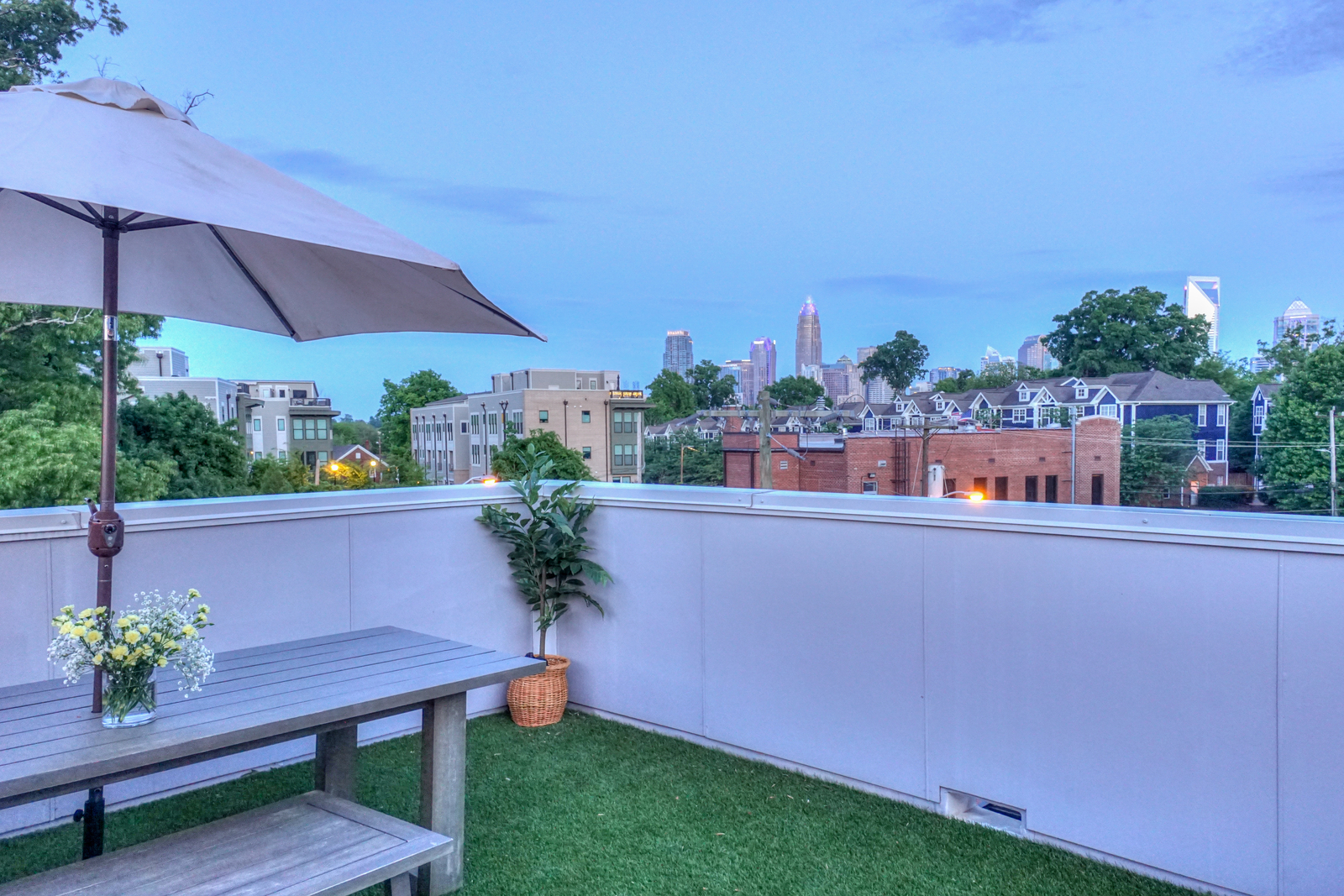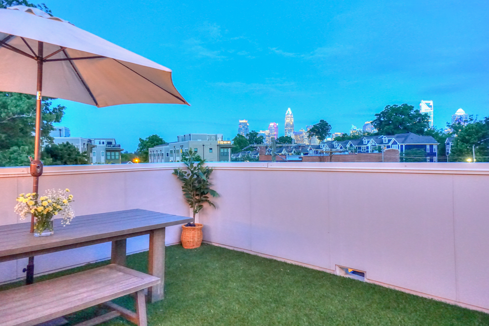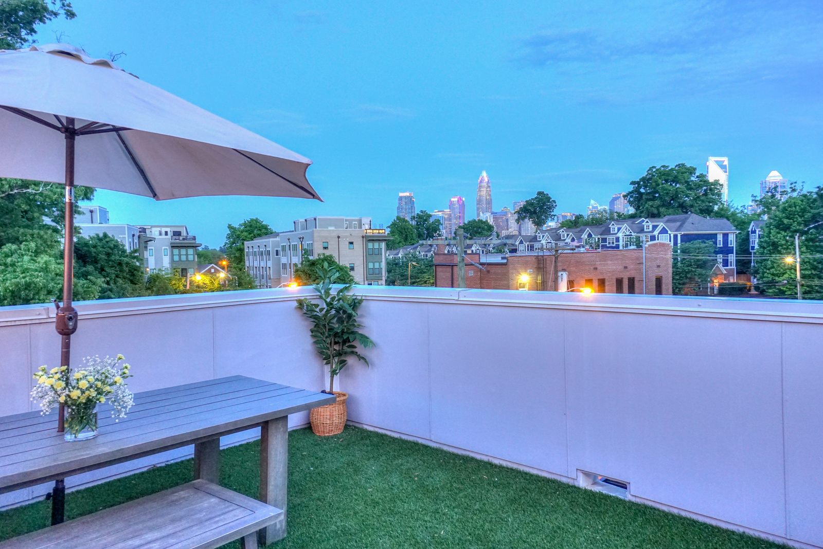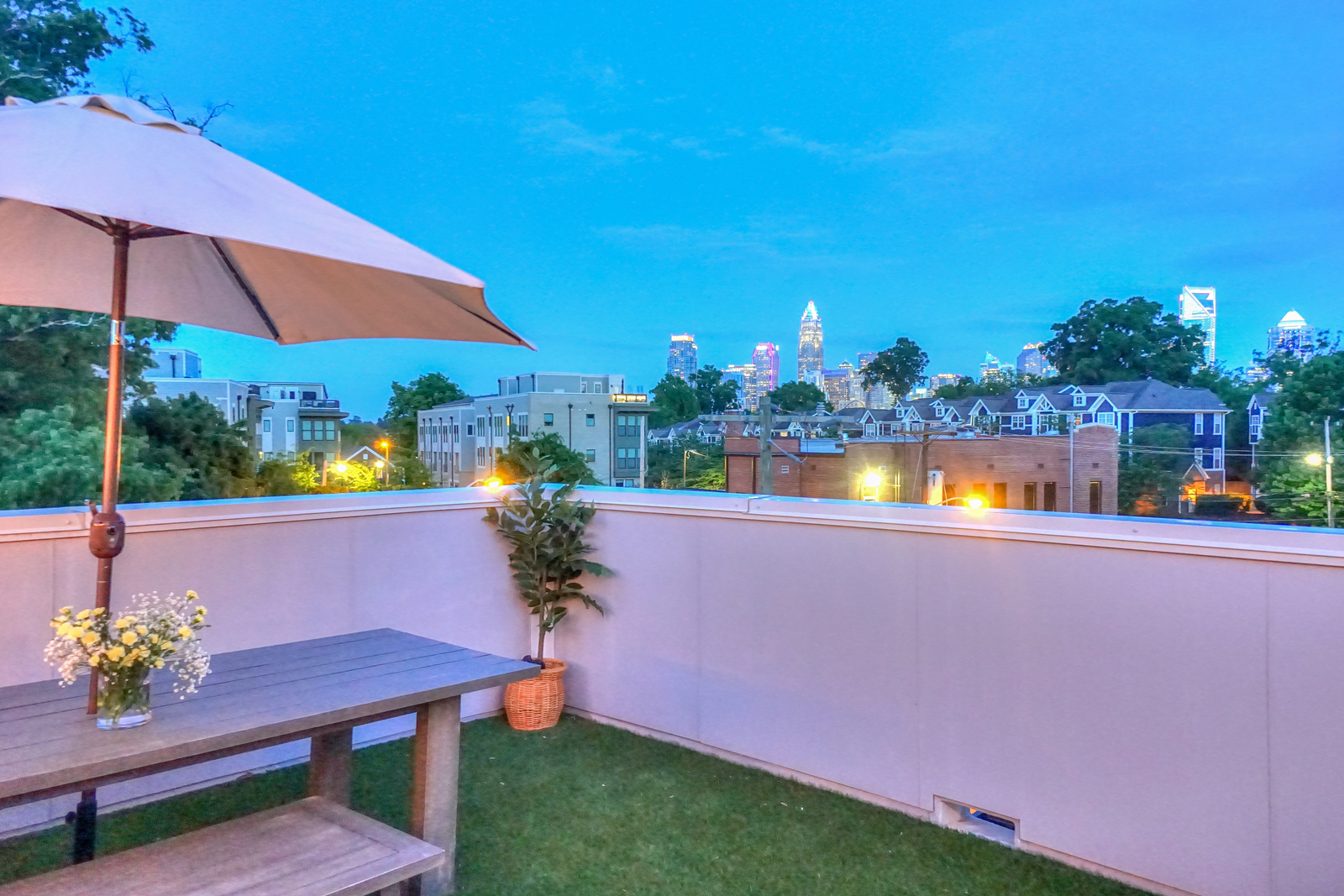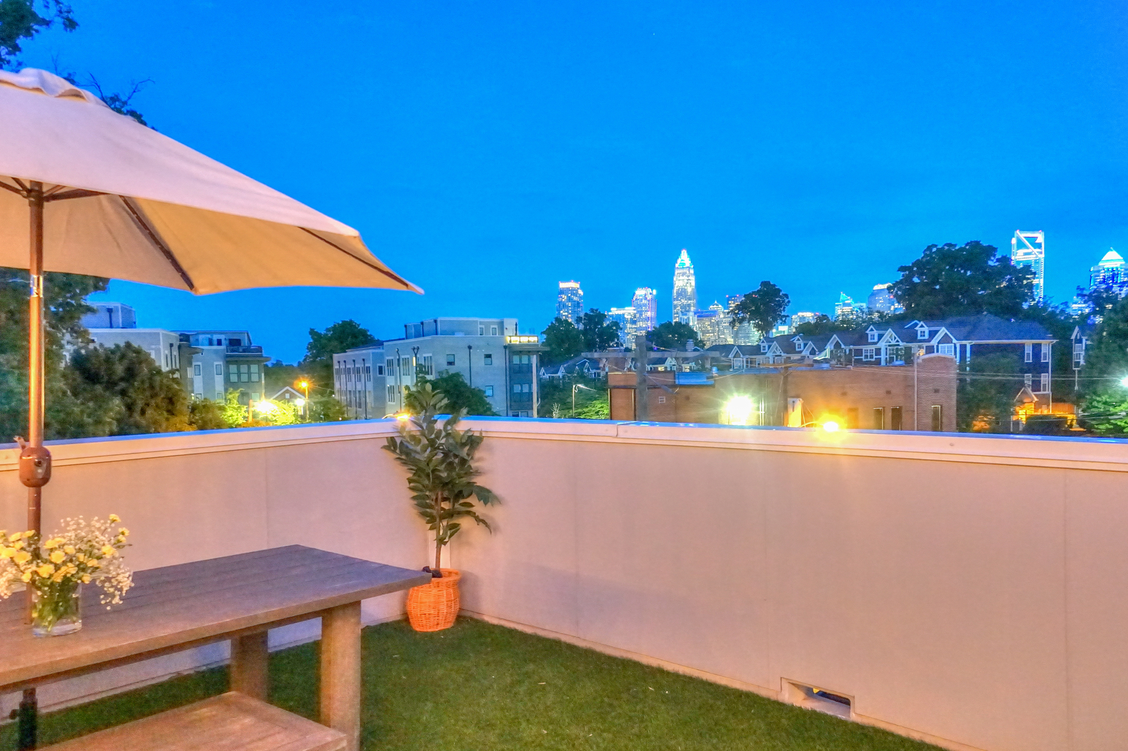 Look at these uptown views! Just 2 blocks from the new gold line light rail and new $80M Lower Tuckaseegee project that opens this summer with new office and retail space! Walk to Town Brewing, Blue Blaze brewing, Summit Seltzery and Lucky Dog Bark and Brew. This is an entertainers dream home and shows like a model! This rooftop is ready for sunbathing during the day and your block party at night! This 3 story end unit home has 3 BR's 3 1/2 baths with over 2,100 SF. Built in 2017 this home has all the finishes you are looking for. Wide open main level living featuring floating stairs a chef's dream kitchen, large living area and dining area. The Kitchen boasts SS appliances, island with large sink and quartz countertops with matching quartz backsplash. Gorgeous LVP flooring throughout the home is perfect for pets & spills. Main level BR and ensuite is perfect for a home office or guests. HUGE Master BR with large ensuite. Dual shower heads and Large Walk in closet. RARE 2 car garage!