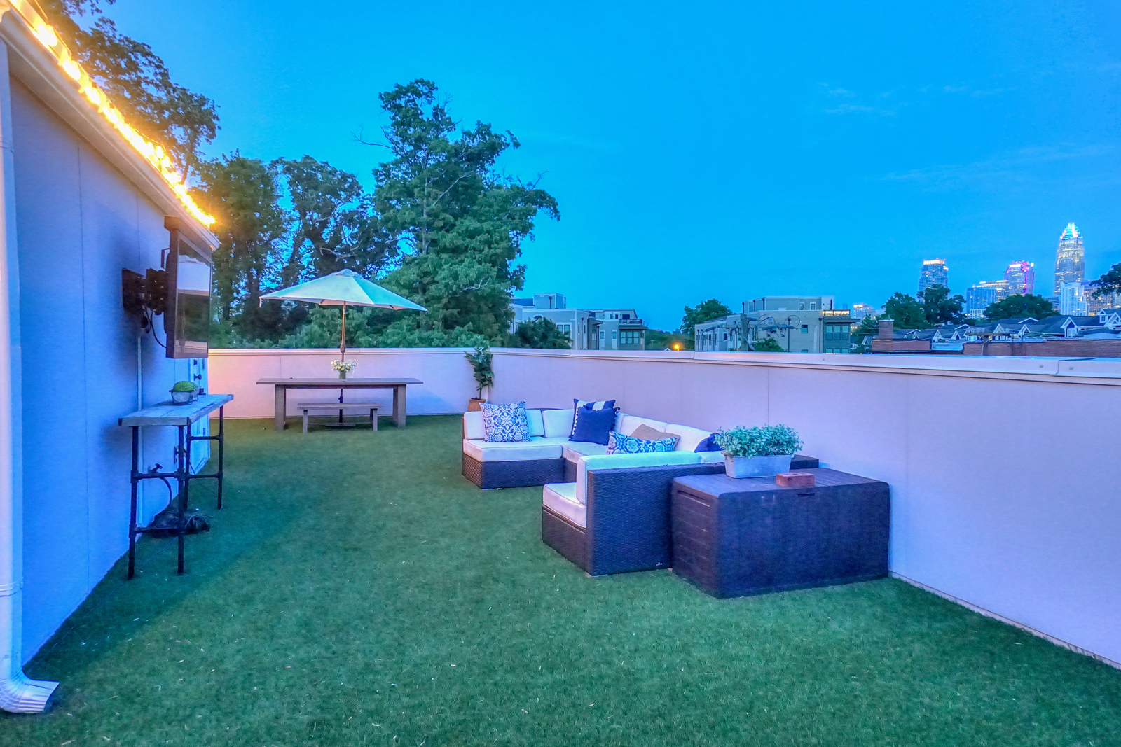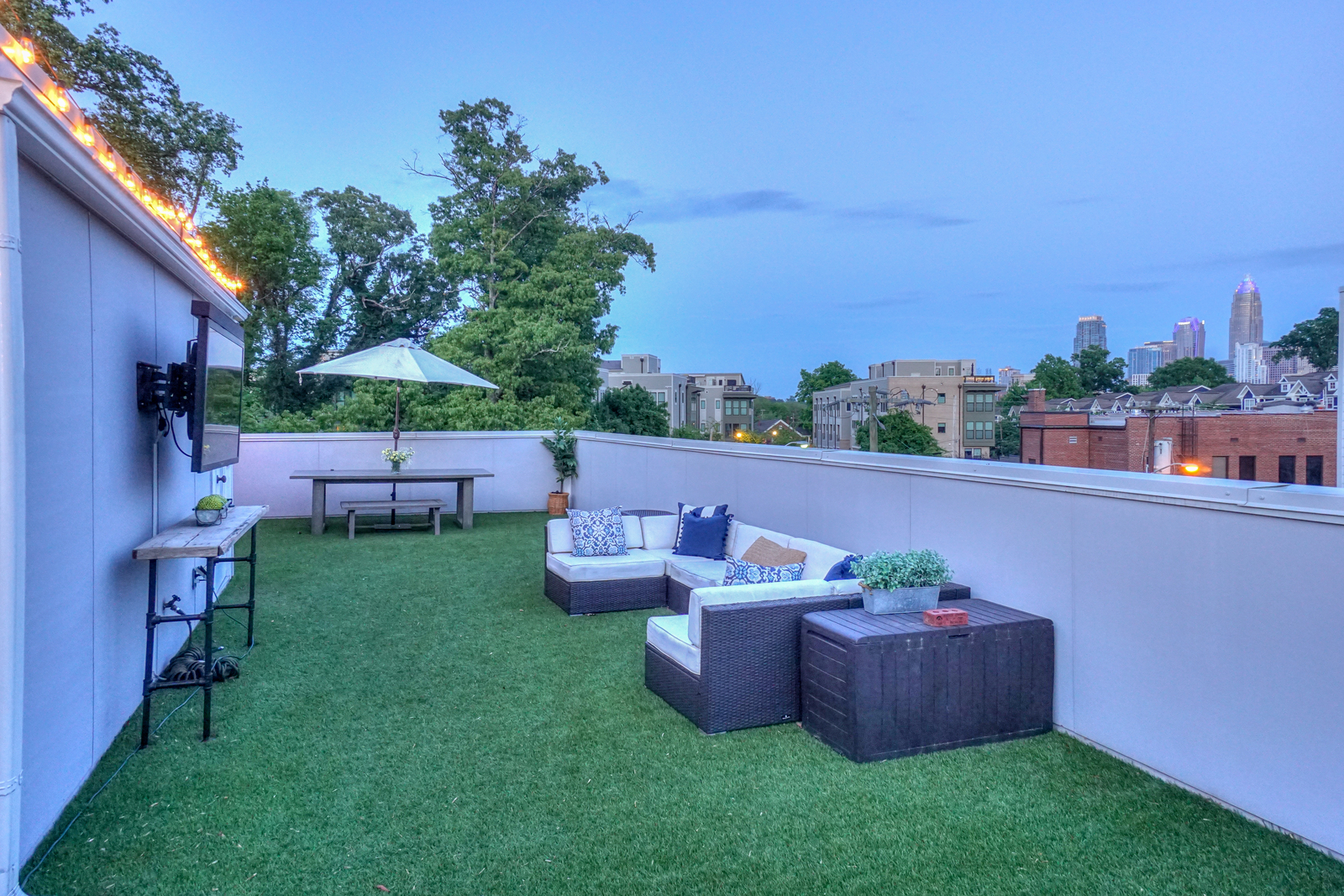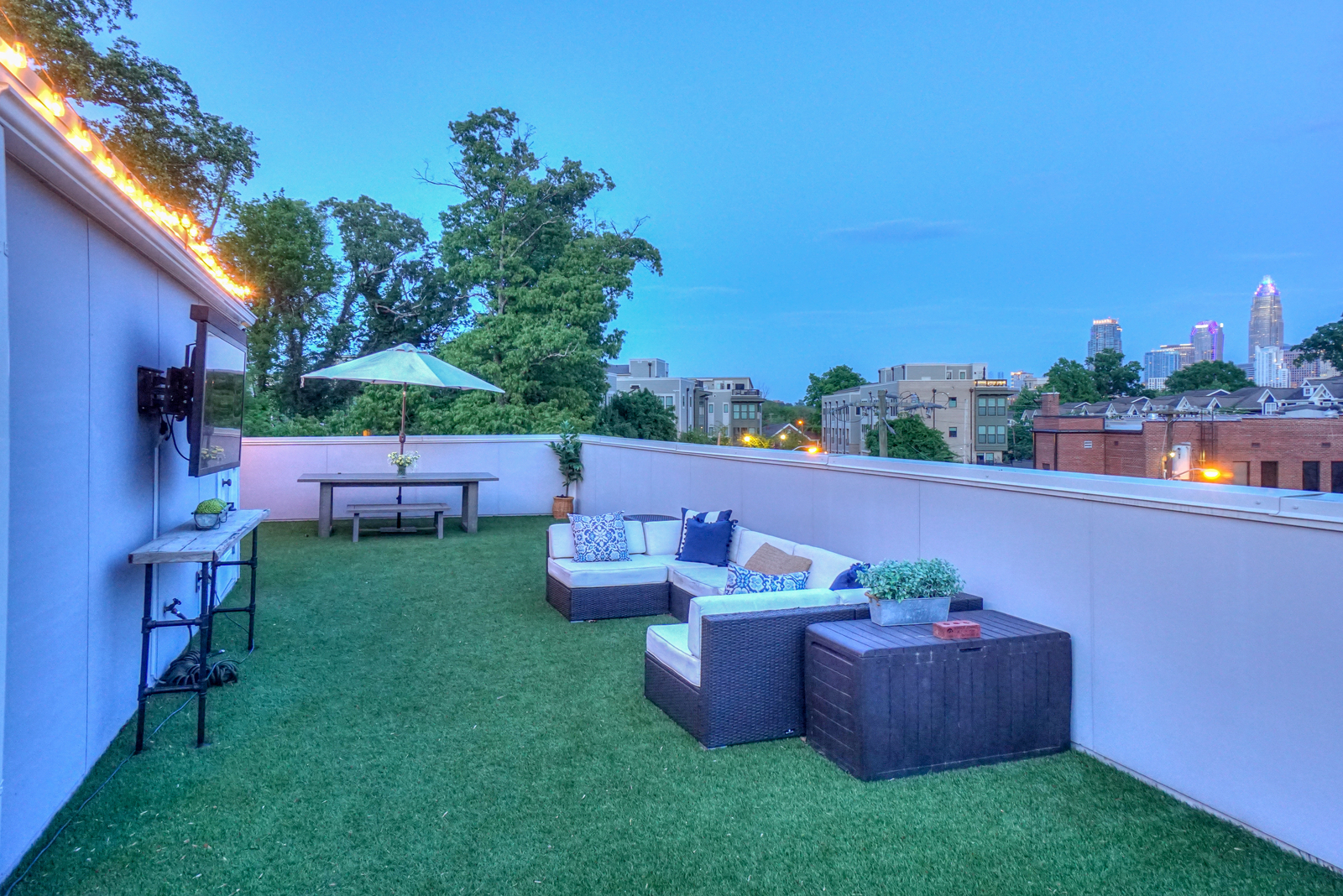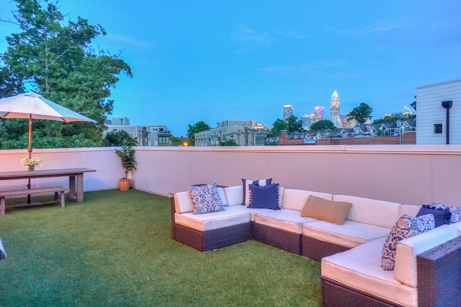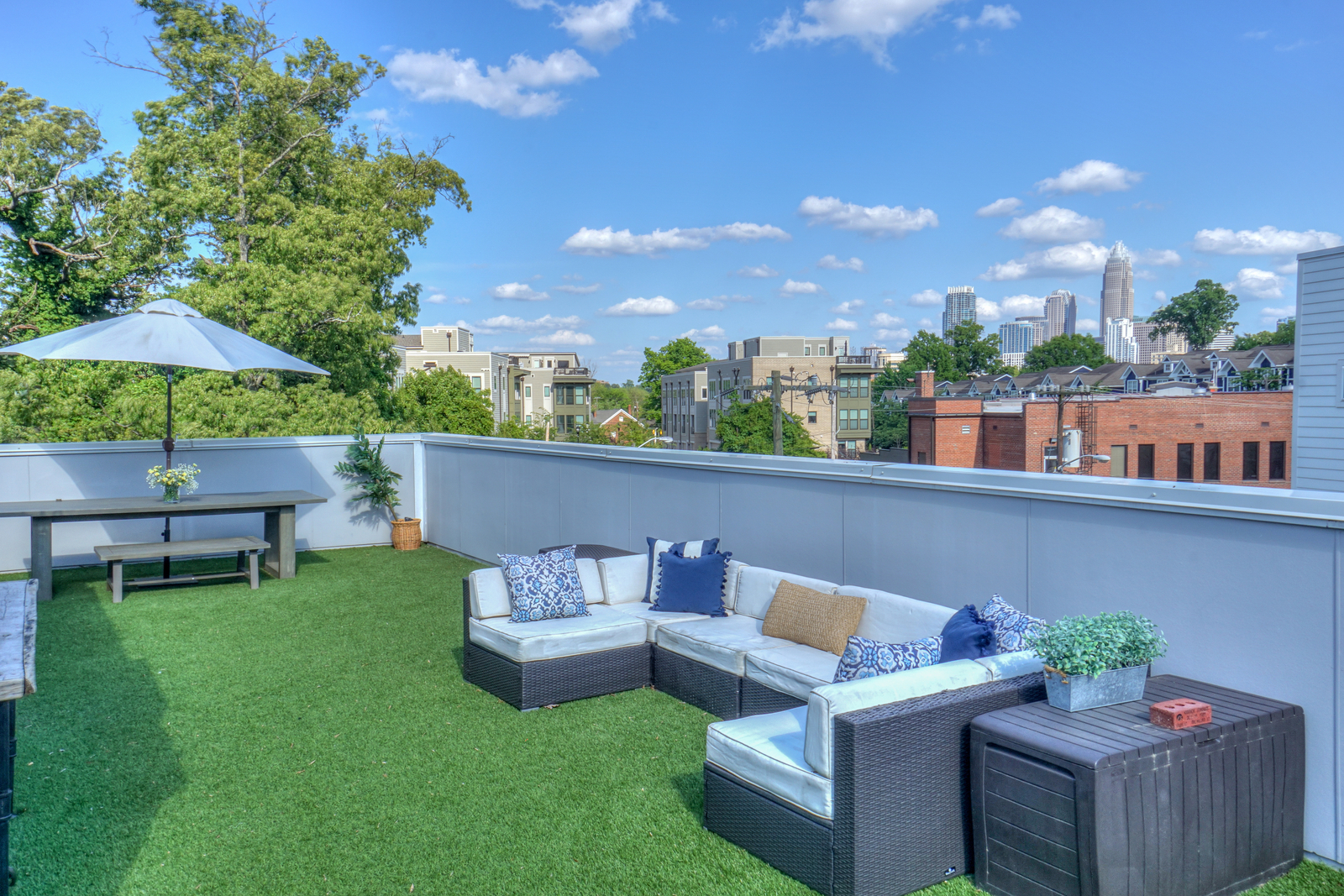 Look at these uptown views! Just 2 blocks from the new gold line light rail and new $80M Lower Tuckaseegee project that opens this summer with new office and retail space! Walk to Town Brewing, Blue Blaze brewing, Summit Seltzery and Lucky Dog Bark and Brew. This is an entertainers dream home and shows like a model! This rooftop is ready for sunbathing during the day and your block party at night! This 3 story end unit home has 3 BR's 3 1/2 baths with over 2,100 SF. Built in 2017 this home has all the finishes you are looking for. Wide open main level living featuring floating stairs a chef's dream kitchen, large living area and dining area. The Kitchen boasts SS appliances, island with large sink and quartz countertops with matching quartz backsplash. Gorgeous LVP flooring throughout the home is perfect for pets & spills. Main level BR and ensuite is perfect for a home office or guests. HUGE Master BR with large ensuite. Dual shower heads and Large Walk in closet. RARE 2 car garage!