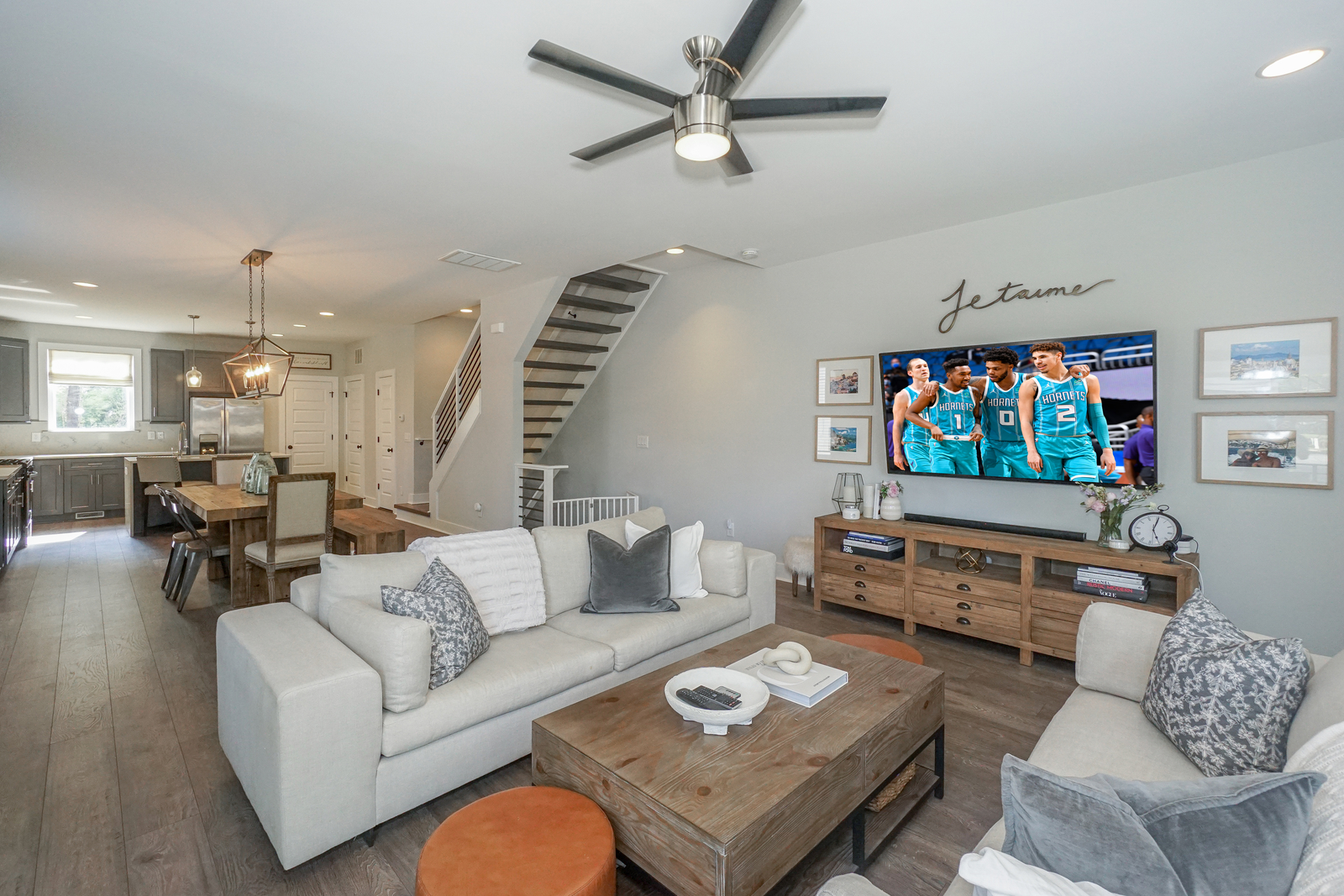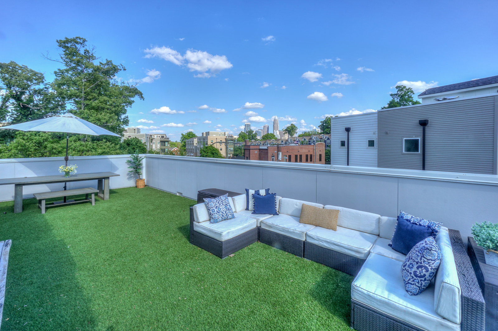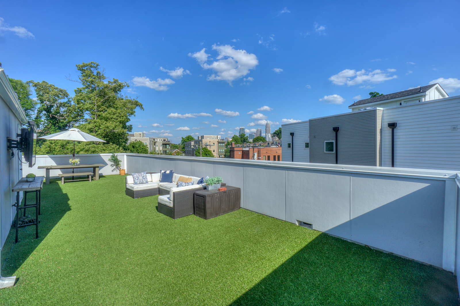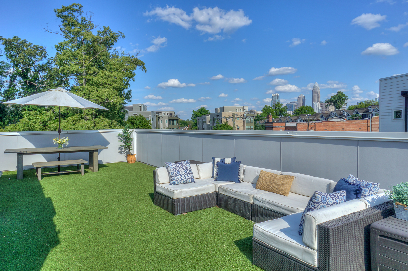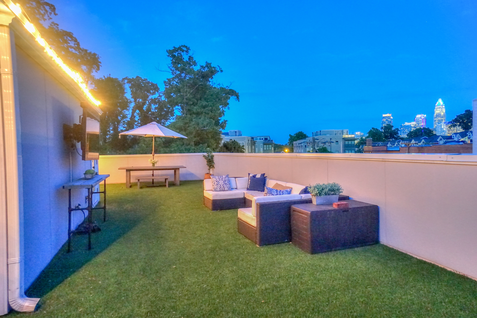 Look at these uptown views! Just 2 blocks from the new gold line light rail and new $80M Lower Tuckaseegee project that opens this summer with new office and retail space! Walk to Town Brewing, Blue Blaze brewing, Summit Seltzery and Lucky Dog Bark and Brew. This is an entertainers dream home and shows like a model! This rooftop is ready for sunbathing during the day and your block party at night! This 3 story end unit home has 3 BR's 3 1/2 baths with over 2,100 SF. Built in 2017 this home has all the finishes you are looking for. Wide open main level living featuring floating stairs a chef's dream kitchen, large living area and dining area. The Kitchen boasts SS appliances, island with large sink and quartz countertops with matching quartz backsplash. Gorgeous LVP flooring throughout the home is perfect for pets & spills. Main level BR and ensuite is perfect for a home office or guests. HUGE Master BR with large ensuite. Dual shower heads and Large Walk in closet. RARE 2 car garage!