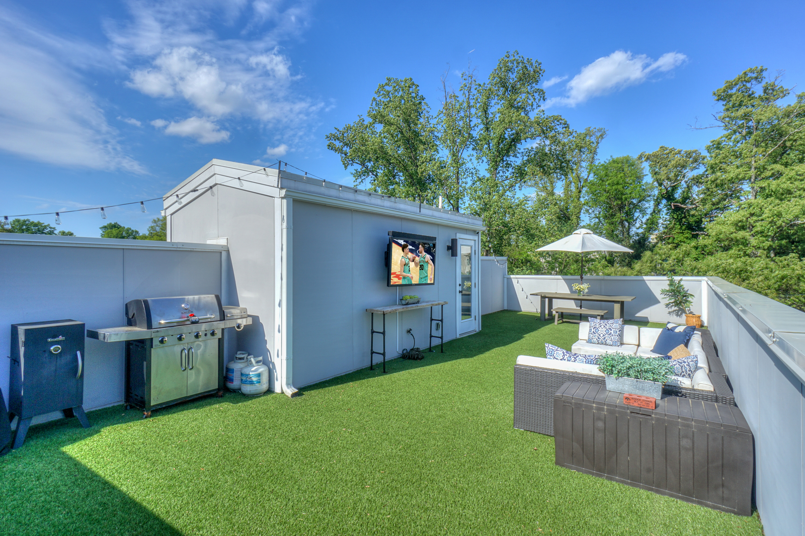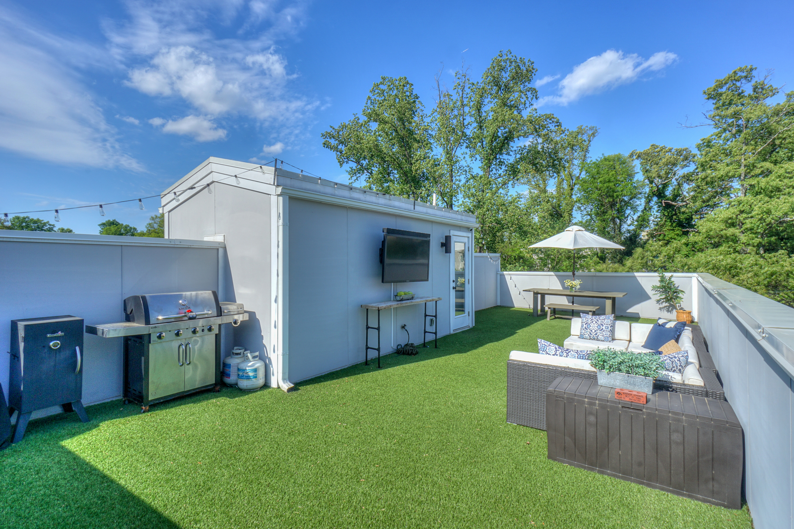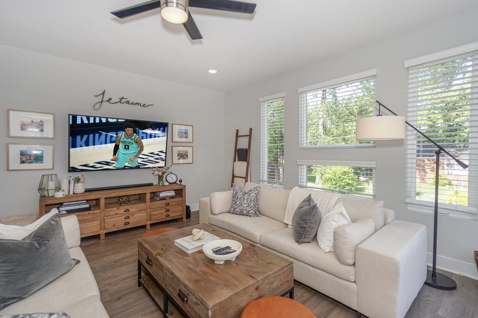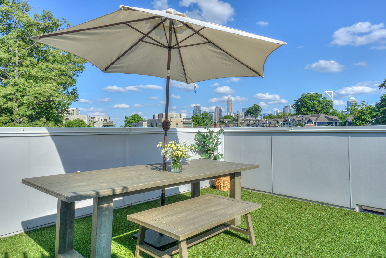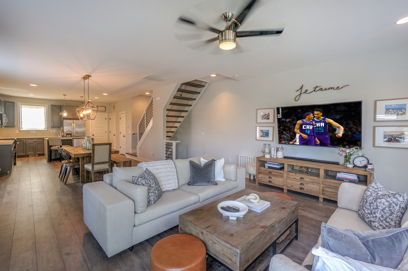 Look at these uptown views! Just 2 blocks from the new gold line light rail and new $80M Lower Tuckaseegee project that opens this summer with new office and retail space! Walk to Town Brewing, Blue Blaze brewing, Summit Seltzery and Lucky Dog Bark and Brew. This is an entertainers dream home and shows like a model! This rooftop is ready for sunbathing during the day and your block party at night! This 3 story end unit home has 3 BR's 3 1/2 baths with over 2,100 SF. Built in 2017 this home has all the finishes you are looking for. Wide open main level living featuring floating stairs a chef's dream kitchen, large living area and dining area. The Kitchen boasts SS appliances, island with large sink and quartz countertops with matching quartz backsplash. Gorgeous LVP flooring throughout the home is perfect for pets & spills. Main level BR and ensuite is perfect for a home office or guests. HUGE Master BR with large ensuite. Dual shower heads and Large Walk in closet. RARE 2 car garage!