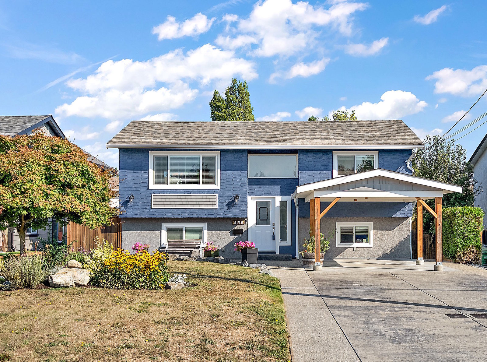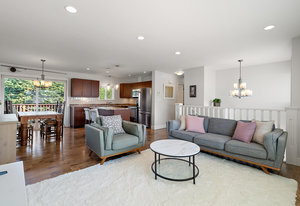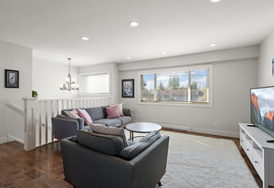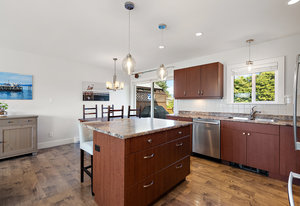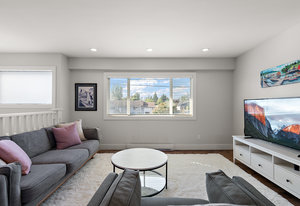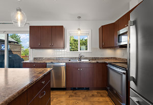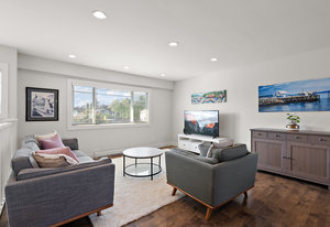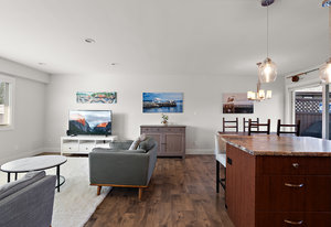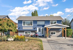 Move-in ready and extensively renovated, this bright and clean home is located on a quiet no-thru street just a short stroll to all of the charming shops, cafes, parks & amenities of beautiful downtown "Sidney by the Sea". Upstairs offers a spacious 2-bed, 2-bath layout with a large open-concept living area, kitchen with island, stainless appliances, and access to a generous deck overlooking the fully fenced yard. Downstairs features a self-contained 2-bed suite with private entry, laundry, and patio—ideal for extended family or rental income. Renovations include new roof, windows, plumbing, perimeter drains, engineered beam to replace wall, soundproofing with rez bar between ...