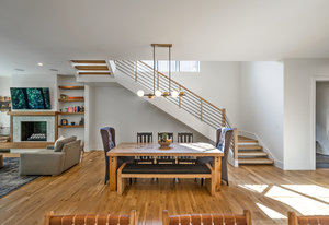 The living room is a masterpiece of design, boasting a custom floating staircase and expansive 4-panel sliding door system that seamlessly connects indoor and outdoor living spaces. Imagine entertaining guests in the well-appointed outdoor area, creating unforgettable memories against a backdrop of unparalleled luxury.