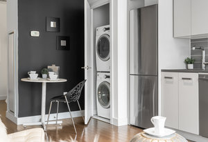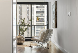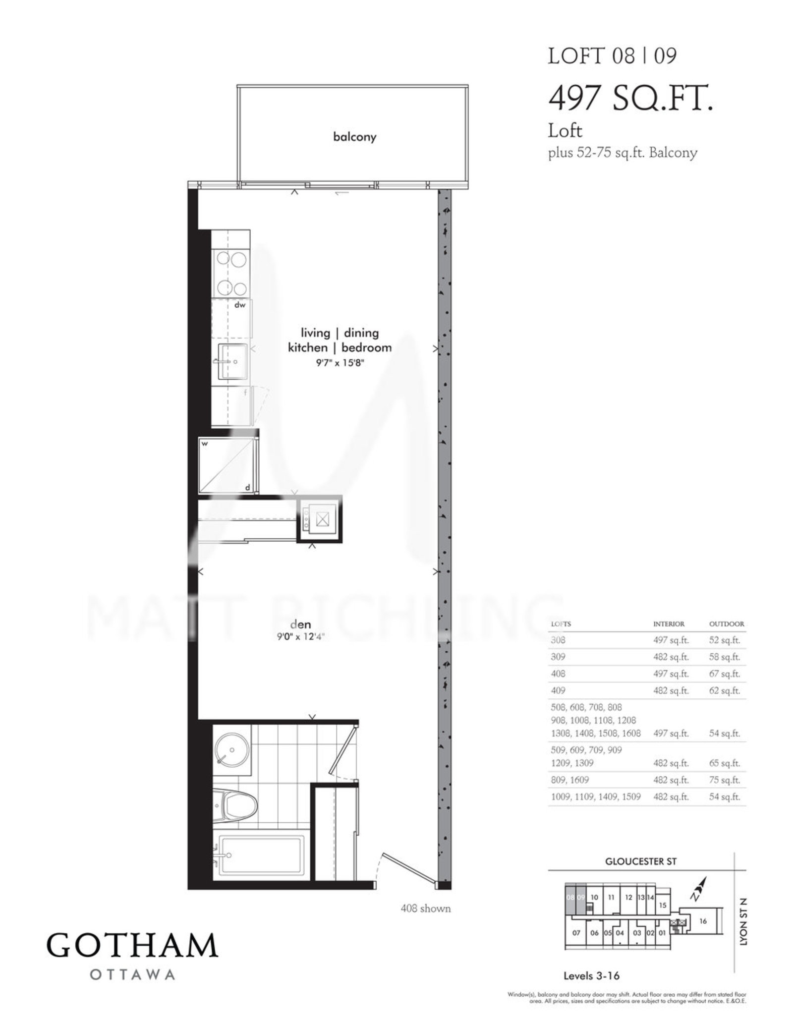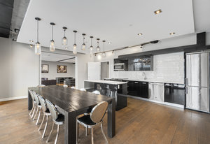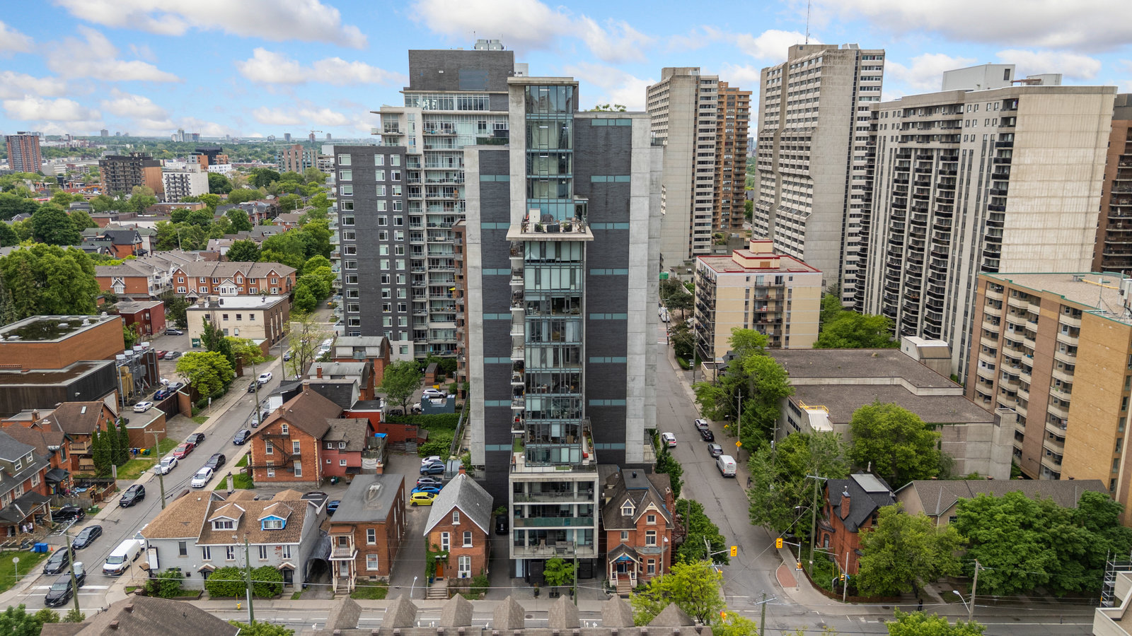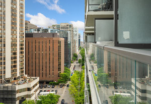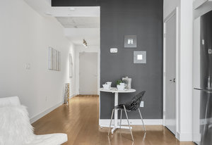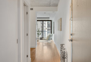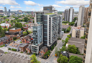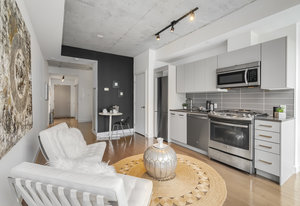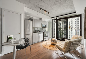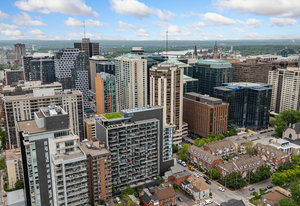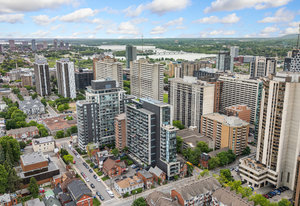 Experience sleek, modern living in the heart of Ottawa's Centretown at Gotham, a striking 17-storey architectural masterpiece. This chic bachelor unit boasts contemporary finishes, including stunning hardwood floors, exposed concrete ceilings, and expansive floor-to-ceiling windows that flood the space with natural light. The stylish kitchen features quartz countertops, stainless steel appliances, a gas stove, and sleek modern cabinetry. Step outside onto your private balcony, equipped with a natural gas hookup for effortless barbecuing. Gotham residents enjoy reasonable condo fees (the only utility bill for owners is hydro) and an impressive suite of amenities, including concierge services, an electronic buzzer system, surveillance cameras, key fob access to the lobby and garage, and bicycle parking. The spacious party room is perfect for entertaining, complete with a fully equipped kitchen, a large dining table, an expansive terrace, and a cozy seating area for social gatherings. One underground parking spot is available for rent with this unit. Conveniently located, this vibrant community places you just a short stroll from three fenced dog parks, two grocery stores, and the diverse bars and restaurants of Centretown.