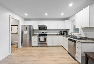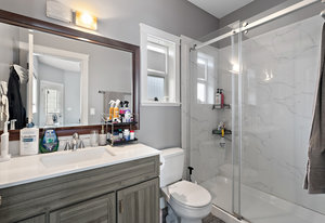 Welcome to popular Church Hill Meadows! This 5 bed, 3 bath residence spans just under 3,000sq/f & features a 3 bed main residence plus 2 bed suite - both units featuring large kitchens & living areas plus private fenced yards! The entire home boasts a modern aesthetic & plenty of space. The main home has a well-appointed kitchen w/ real wood cabinets & heated slate tile flooring. The large primary bedroom offers access to the deck, while separate family & living rooms provide ample space for relaxation & entertaining. Enjoy the convenience of stairs leading from the deck to the fully fenced yard, perfect for BBQing and letting little ones play in this family-friendly ...