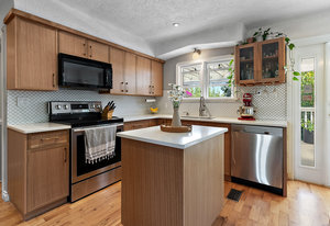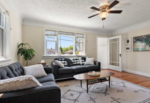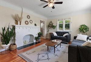 Welcome to this charming 3-bedroom, 2-bathroom character home! From the moment you step inside, you'll be delighted by the tasteful blend of classic charm and modern updates. The original hardwood floors with mosaic detailing, cove ceilings, and wood-burning fireplace add character to the bright and spacious main living areas.