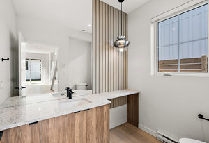 Brand new home brought to you by Little Crow Projects. Incredible space planning and interior design by award winning Spaciz Design. Energy efficiency level 4 home with heat pump (A/C) and hot water on demand. High-end finishings and materials used throughout. Gourmet kitchen offers modern wood grained millworks, plenty of built in storage, quartz countertops, oversized island, and premium stainless-steel appliances (gas range). Spacious kitchen and dining area is extended by floor to ceiling windows for natural light and access to private south-facing backyard patio. Living room offers a relaxing space enhanced with cozy gas fireplace and custom built-ins. Upstairs you will find a perfectly laid ...