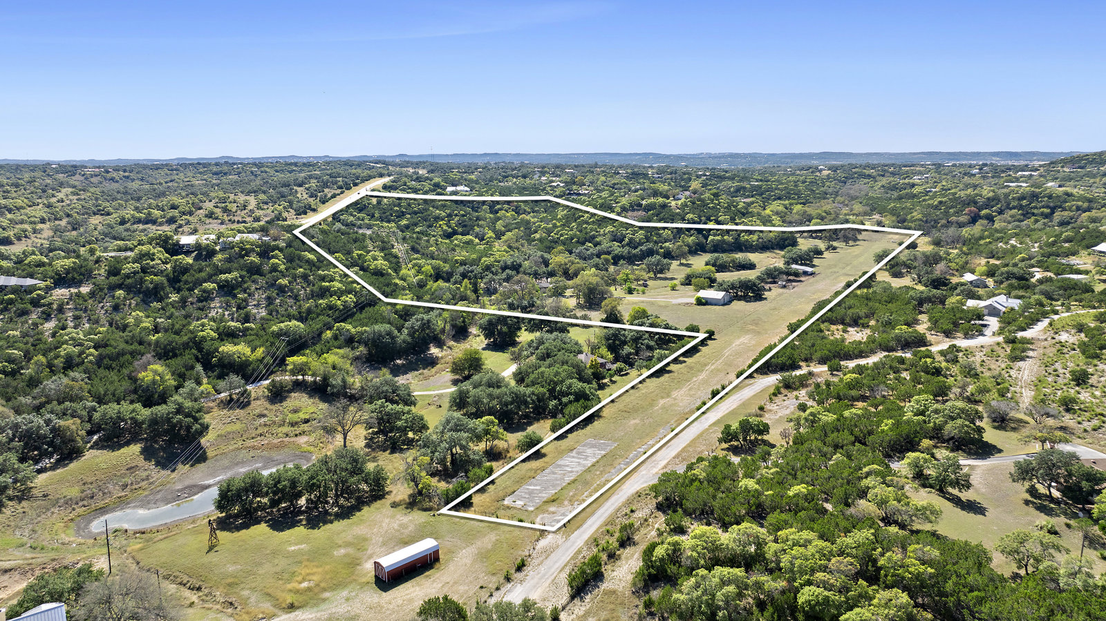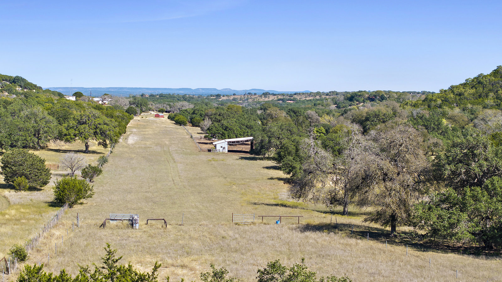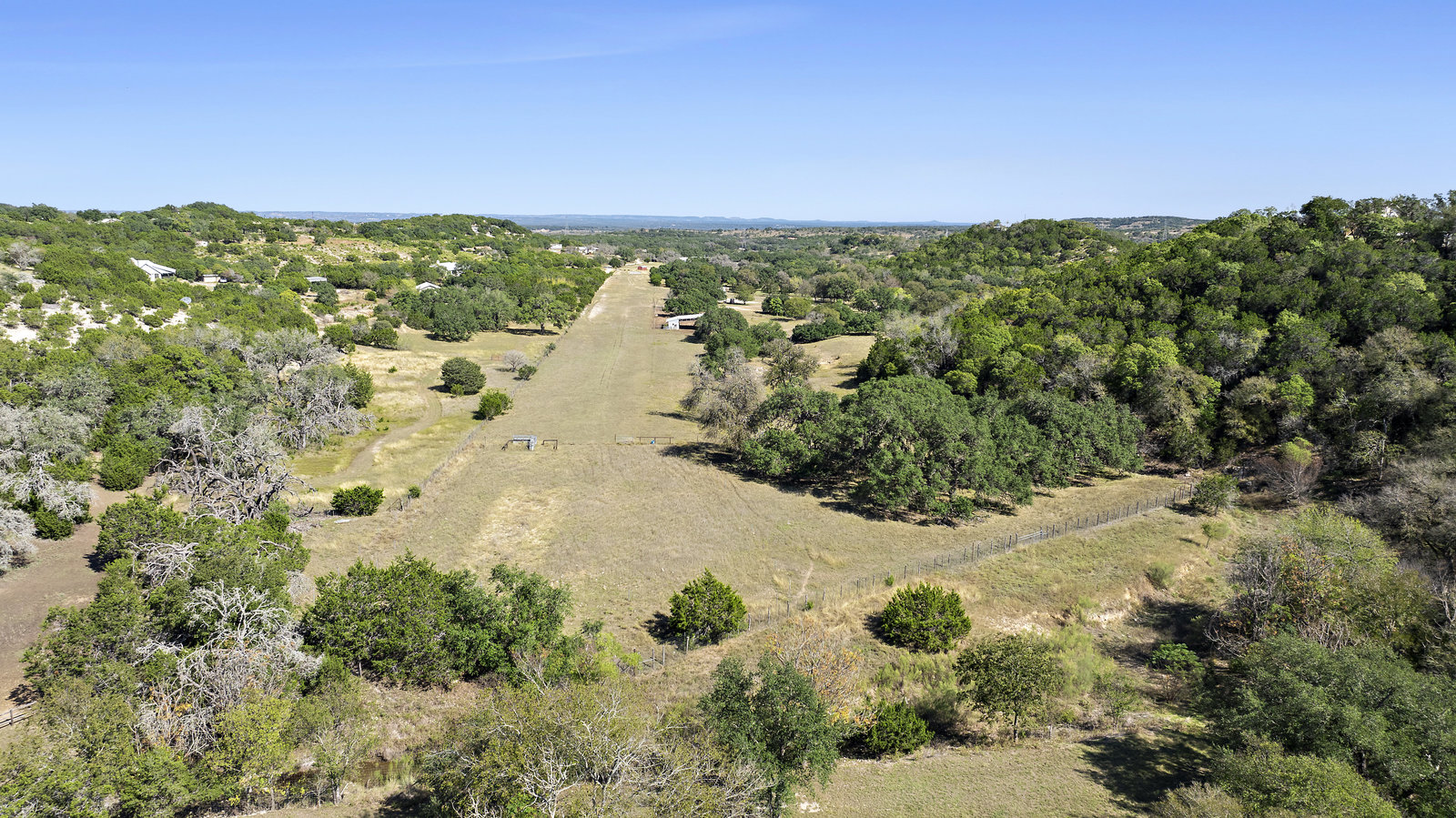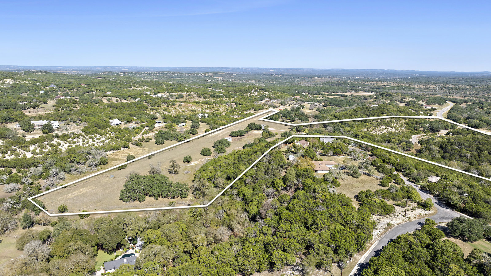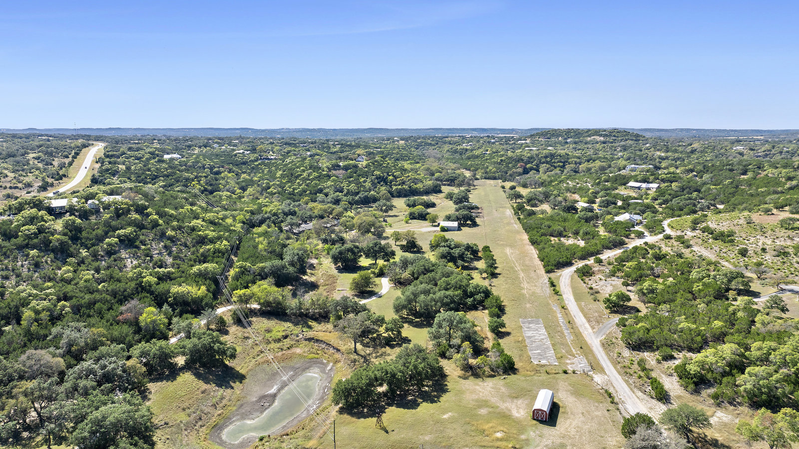 42+/- Texas Hill Country acres in Boerne, Texas, Kendall County. Property is ag exempt and unrestricted. Main home is situated amoung mature oaks and along the banks of Sabinas Creek. A second home for a ranch foreman or guest is located at the entry gate. A unique feature of this property is it has a 2300' long dirt runway and is called the John Henry Key Airport. The Main home has 3 BD, 3 Full Baths and is 4000sf, there's also a large detached building that could be a 4th bedroom, game room or office, and it includes a full bath. The foreman home is a 2 BD, 2 Full Bath. This home was renovated in 2019.