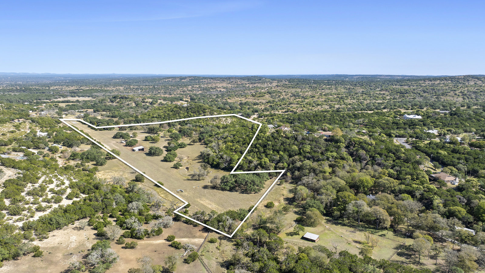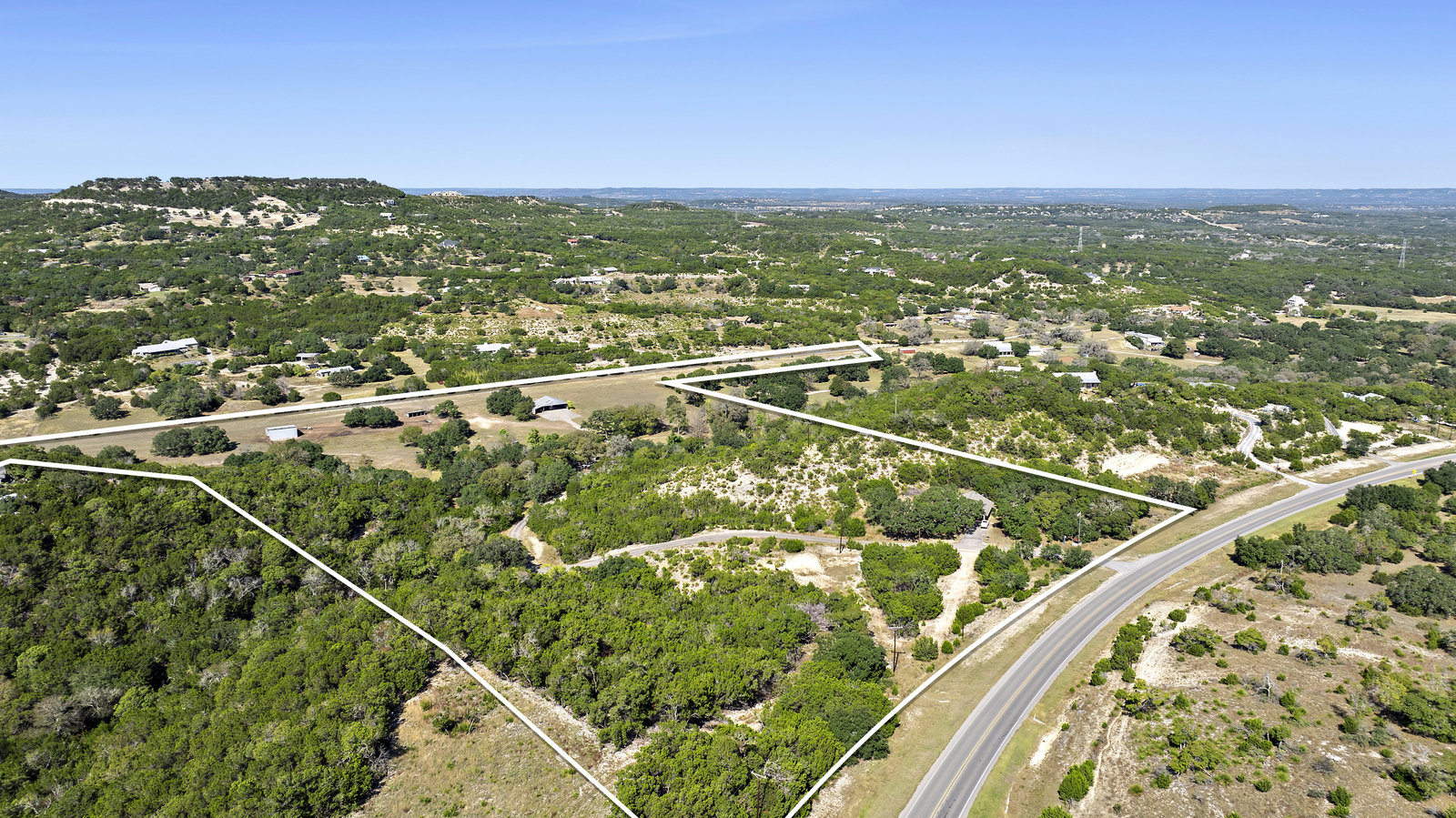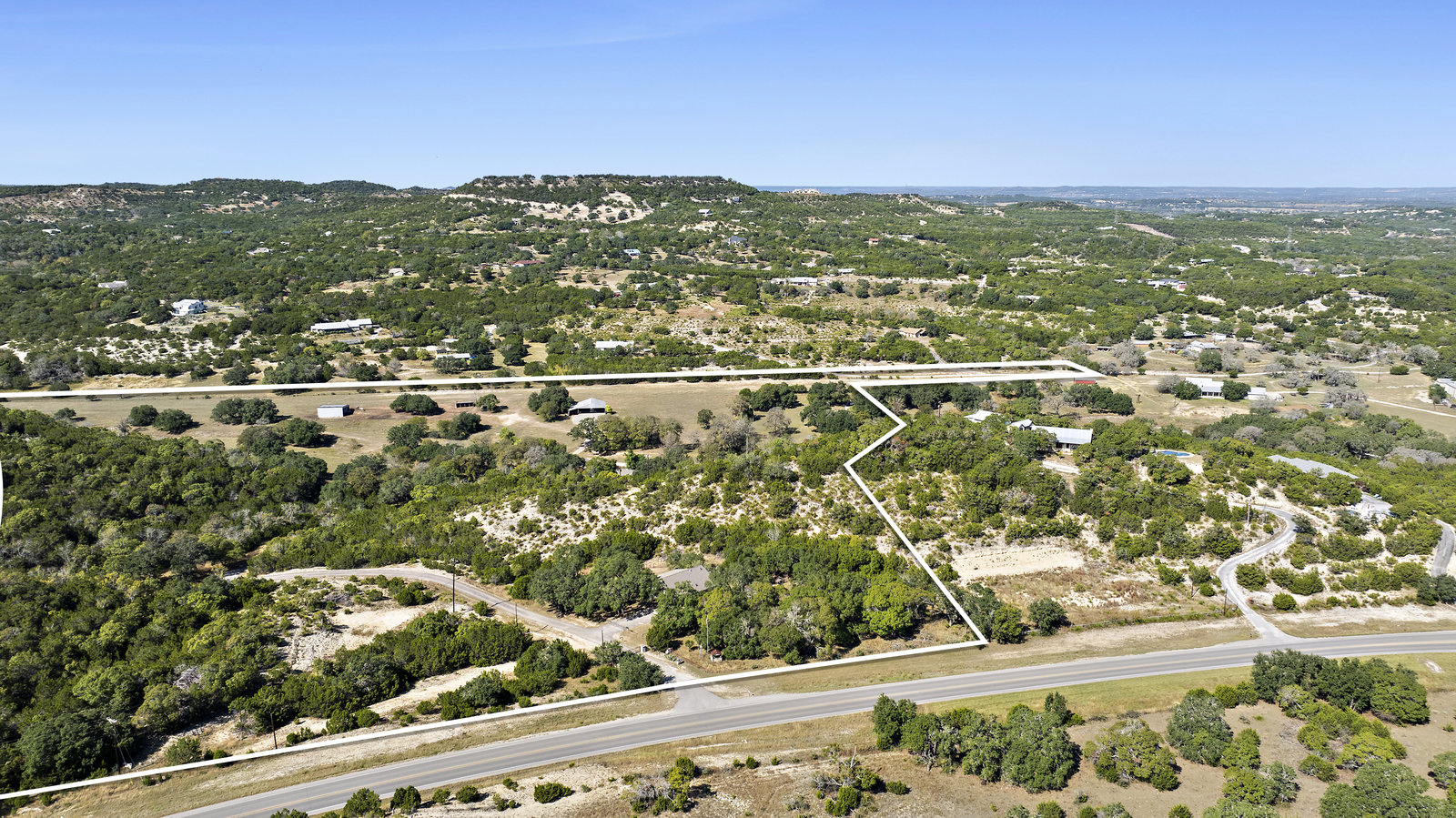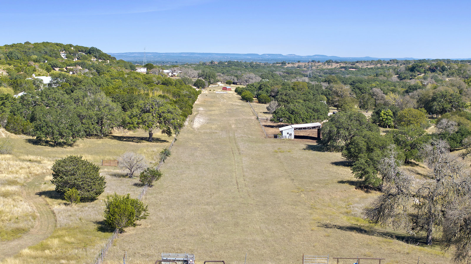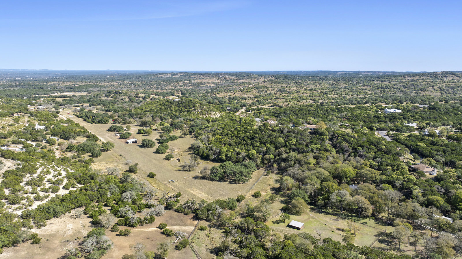 42+/- Texas Hill Country acres in Boerne, Texas, Kendall County. Property is ag exempt and unrestricted. Main home is situated amoung mature oaks and along the banks of Sabinas Creek. A second home for a ranch foreman or guest is located at the entry gate. A unique feature of this property is it has a 2300' long dirt runway and is called the John Henry Key Airport. The Main home has 3 BD, 3 Full Baths and is 4000sf, there's also a large detached building that could be a 4th bedroom, game room or office, and it includes a full bath. The foreman home is a 2 BD, 2 Full Bath. This home was renovated in 2019.