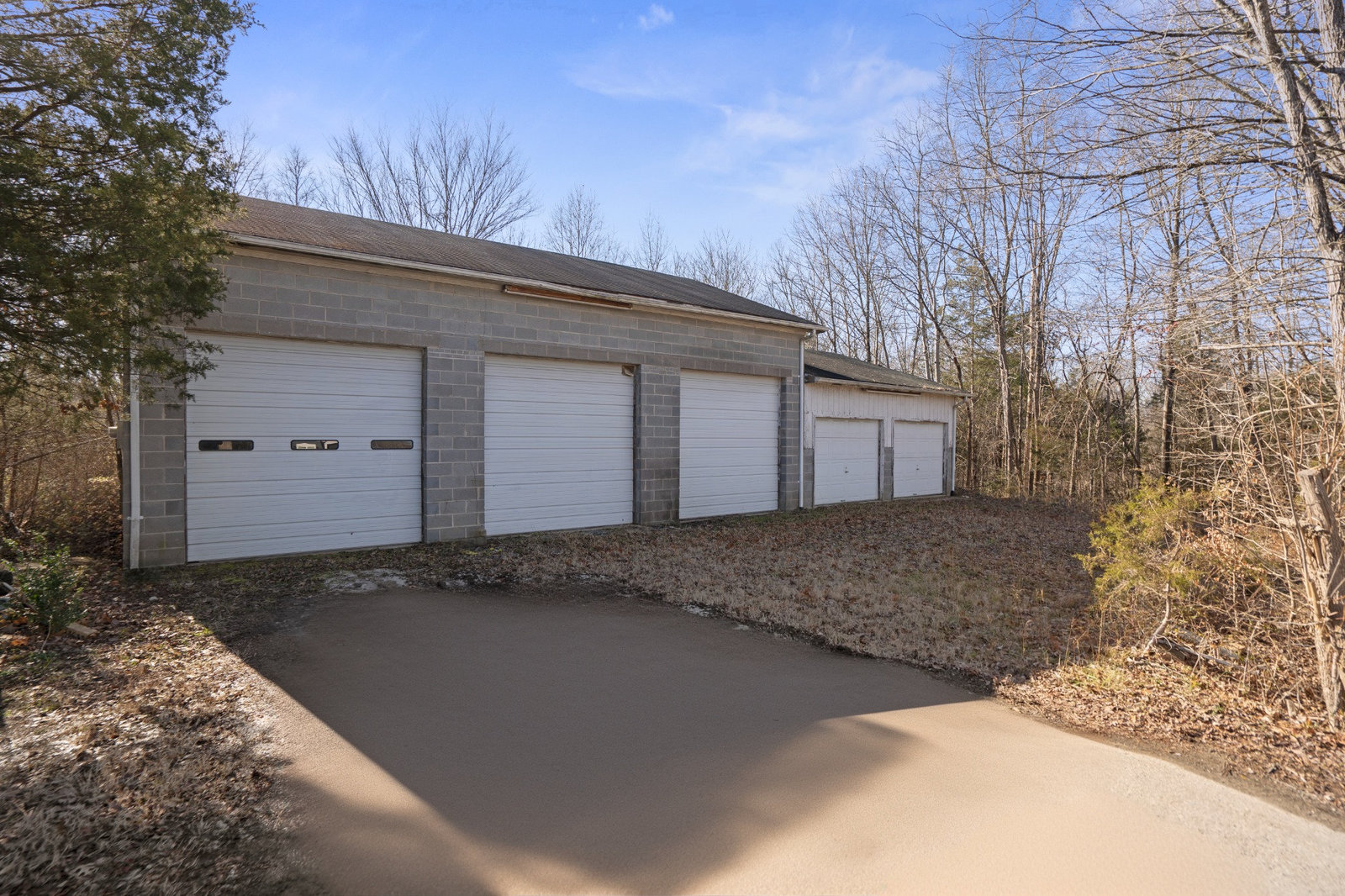 A massive 3-bay garage featuring a total of 4 tall garage doors and an impressive 1,800 sq. ft. of space – perfect for storing vehicles, equipment, or converting into an extraordinary workshop or living space.