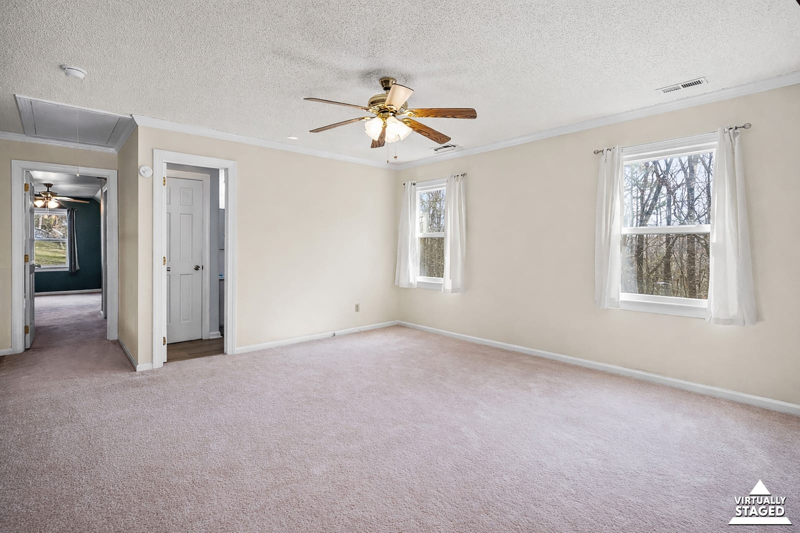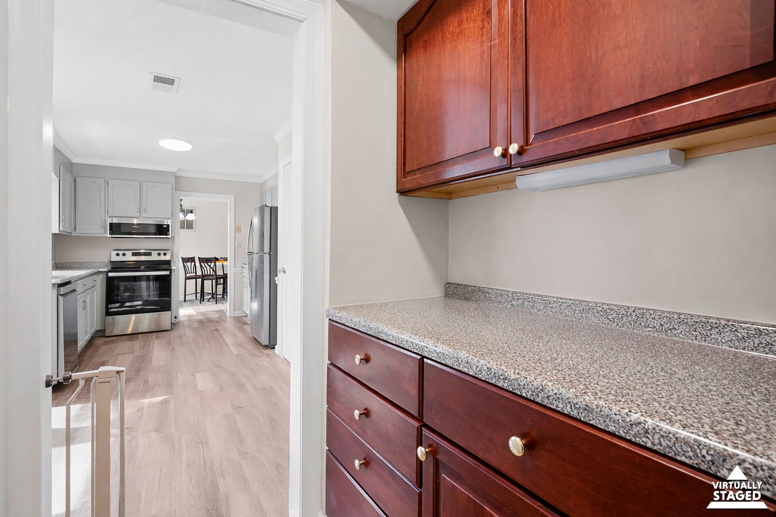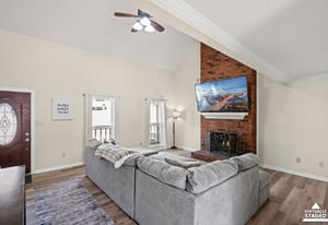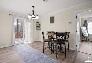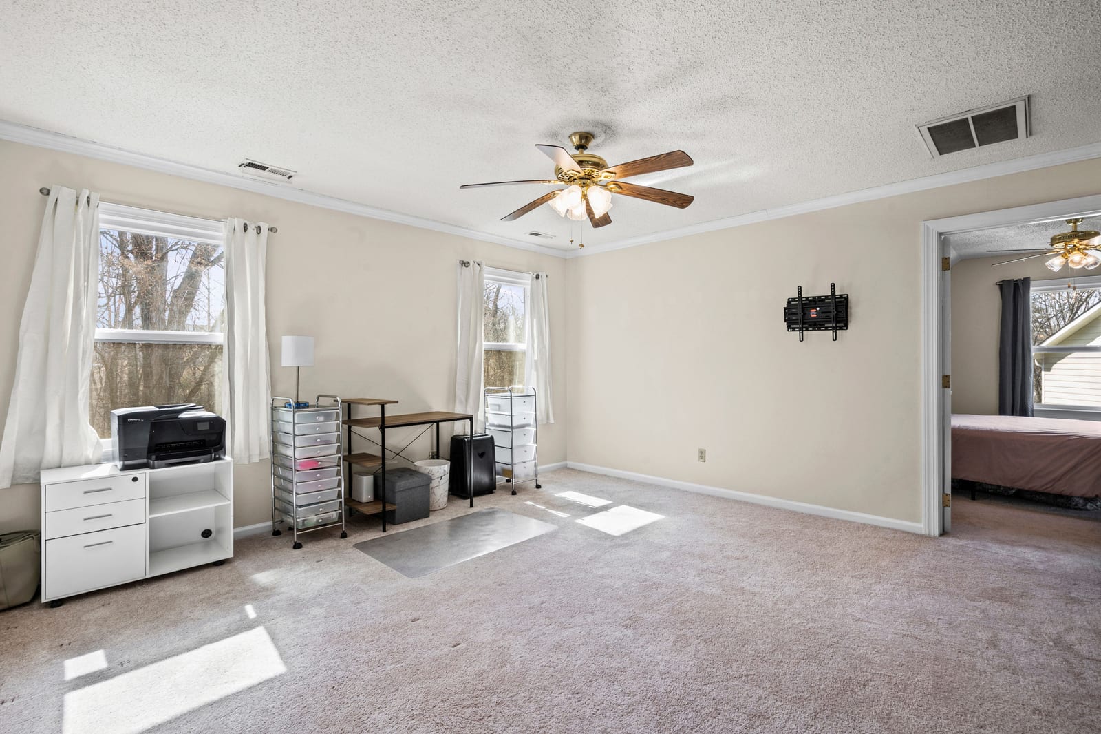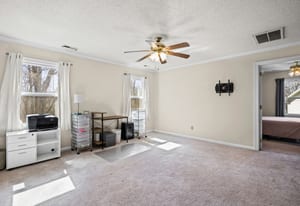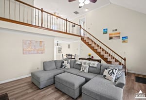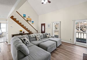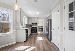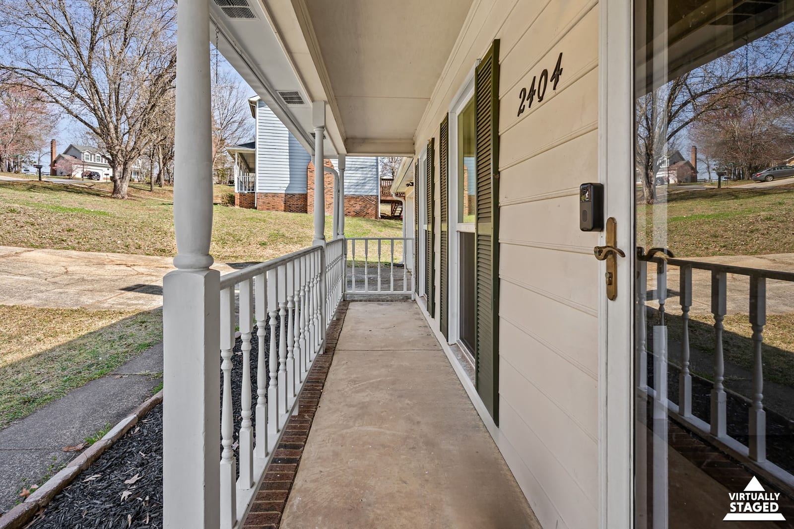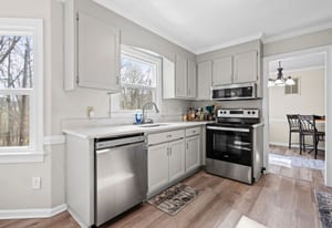 Welcome to 2404 Wildburne Court, a beautifully updated 3-bed, 2.5-bath single-family home nestled on a quiet cul-de-sac in the highly desirable Houston Farms subdivision of Charlotte. Built in 1990, this classic residence combines charm with thoughtful modern upgrades and offers 1985 sq ft of well-designed living space on a 0.26-acre level, wooded lot, perfect for both everyday living and entertaining. Inside, discover a spacious vaulted two-story great room centered around a wood-burning fireplace, creating an open and inviting atmosphere. The heart of the home is the modernized kitchen, featuring quartz countertops, painted cabinetry, stainless-steel appliances, and abundant storage. A convenient coffee bar, large pantry, and dedicated laundry room add to the functional layout. The primary bedroom on the main level enhances accessibility and comfort, while two additional upstairs bedrooms, a full bath, and a versatile loft space provide flexible living or work-from-home options. Outdoors, enjoy a covered rocking-chair front porch overlooking the cul-de-sac and a fenced, private backyard with a generous deck, ideal for barbecues, relaxing, or play. A large storage shed adds practicality for yard tools and outdoor gear. New gutter guard gutters installed in 2024. Additional highlights include an attached two-car garage, no HOA restrictions, and proximity to major highways, shopping, dining, and parks, combining convenience with peaceful neighborhood living.