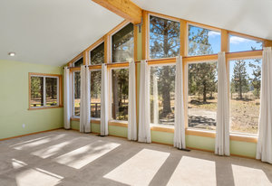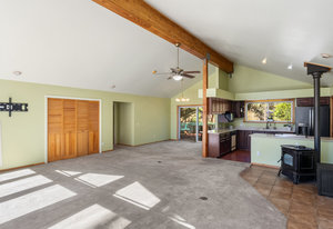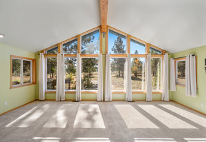 The main home spans over 1,900 sq ft with a thoughtful ranch-style layout that blends comfort and practicality. Bright, open living areas flow seamlessly between the living, dining, and kitchen spaces, featuring vaulted ceilings, a pellet stove, and a wall of windows framing serene meadow views and surrounding trees.