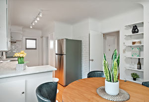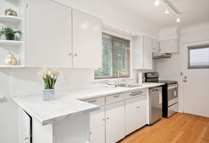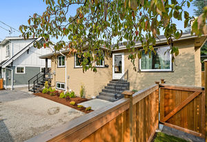 This beautifully renovated 50's home includes: new roof, gutter, paint inside and out, appliances, landscaping, sprinkler system, fencing, permeable driveway, partial perimeter drains, heating, counter top, refaced bathrooms & more...ready to move right in! Four bedrooms & two bathrooms; it fits everyone - perfect for working at the Hospital, a family, or revenue potential! The main floor exudes charm with original hardwood floors throughout, a cozy wood fireplace and a sunny living room, two bedrooms and a lovely eat in kitchen. The 8 foot height lower level is perfect for teenagers or students. Two LARGE bedrooms and laundry room with cabinets & enough space to add another kitchen or sitting area (there's no doorway to outside on this floor) and another bathroom. Conveniently located close to Camosun, UVic, all levels of schools, Fernwood Village, Downtown, Jubilee Hospital and 5 minutes to downtown! Check out the media link to video and virtual tour!
