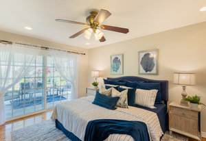 The three bedrooms offer privacy and tranquility for restful nights. Each room is thoughtfully designed with large windows that allow natural light to flood in, creating an airy ambiance. The two bathrooms are well-appointed and provide convenience for both residents and guests.