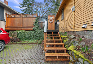 Located in a tucked away corner of the sought-after Fernwood neighbourhood, this three-level, two-bedroom home has lots of indoor and outdoor space to enjoy. The spacious kitchen has been stylishly updated; it leads to a combined living and dining room with access to your 300+ square-foot deck. The upper floor features a large bedroom with walk-in closet, ensuite bath, and private, south-facing balcony. The lower floor has a dedicated laundry room, large second bedroom, and its own patio with west-coast landscaping. This stretch of no-through Scott Street sees minimal traffic, even though major connector routes (Bay, Shelborune) are so close by. Jubilee Hospital is less than a ten-minute walk away, while the immediate area has excellent schools, lovely parks, transit stops, and plenty of options for leisure or errands (Hillside Mall just five minutes by car). With thoughtful renovations throughout and strong bones underneath, this 1914 house has kept up with the times beautifully.