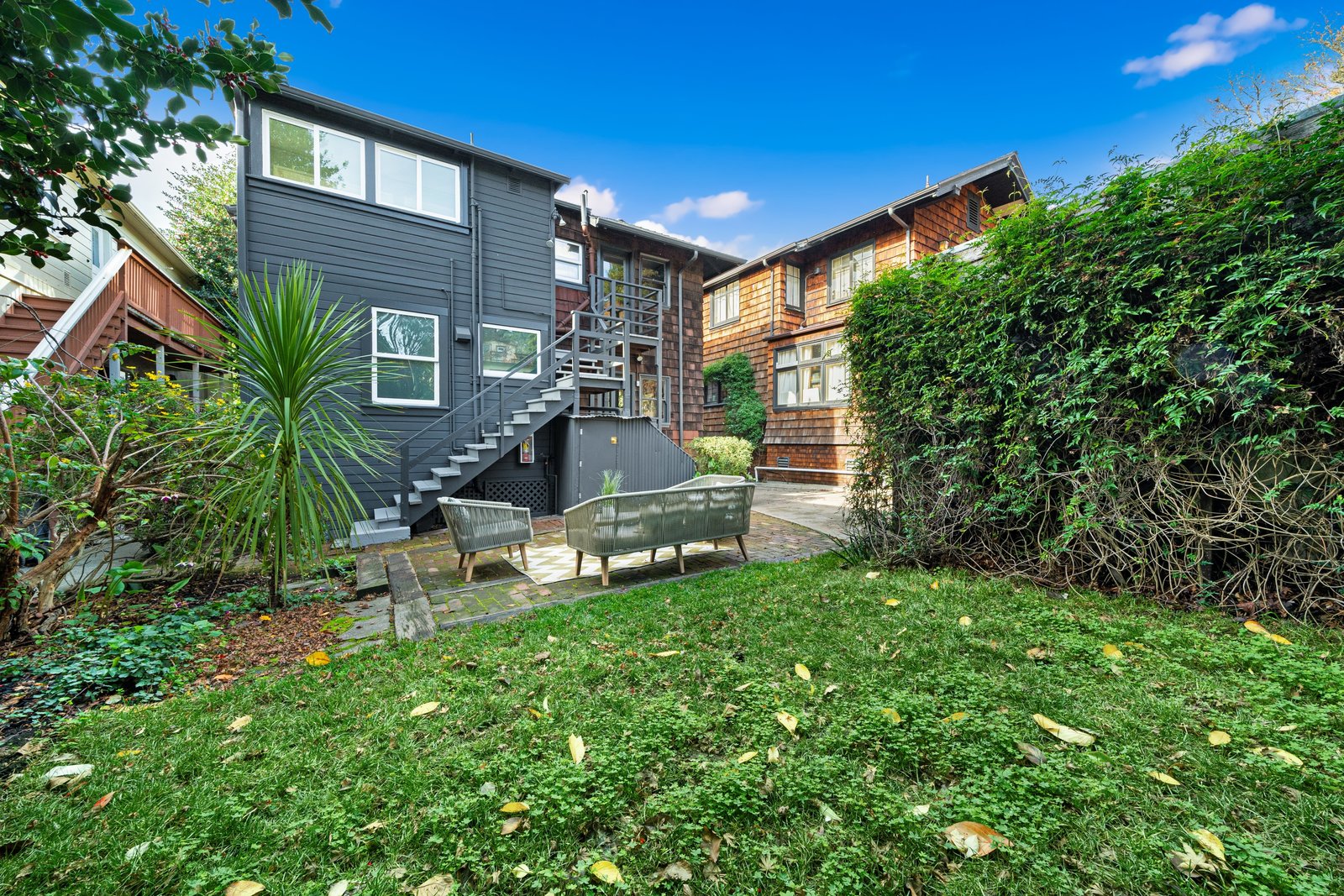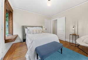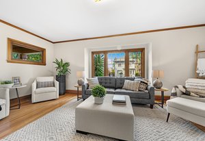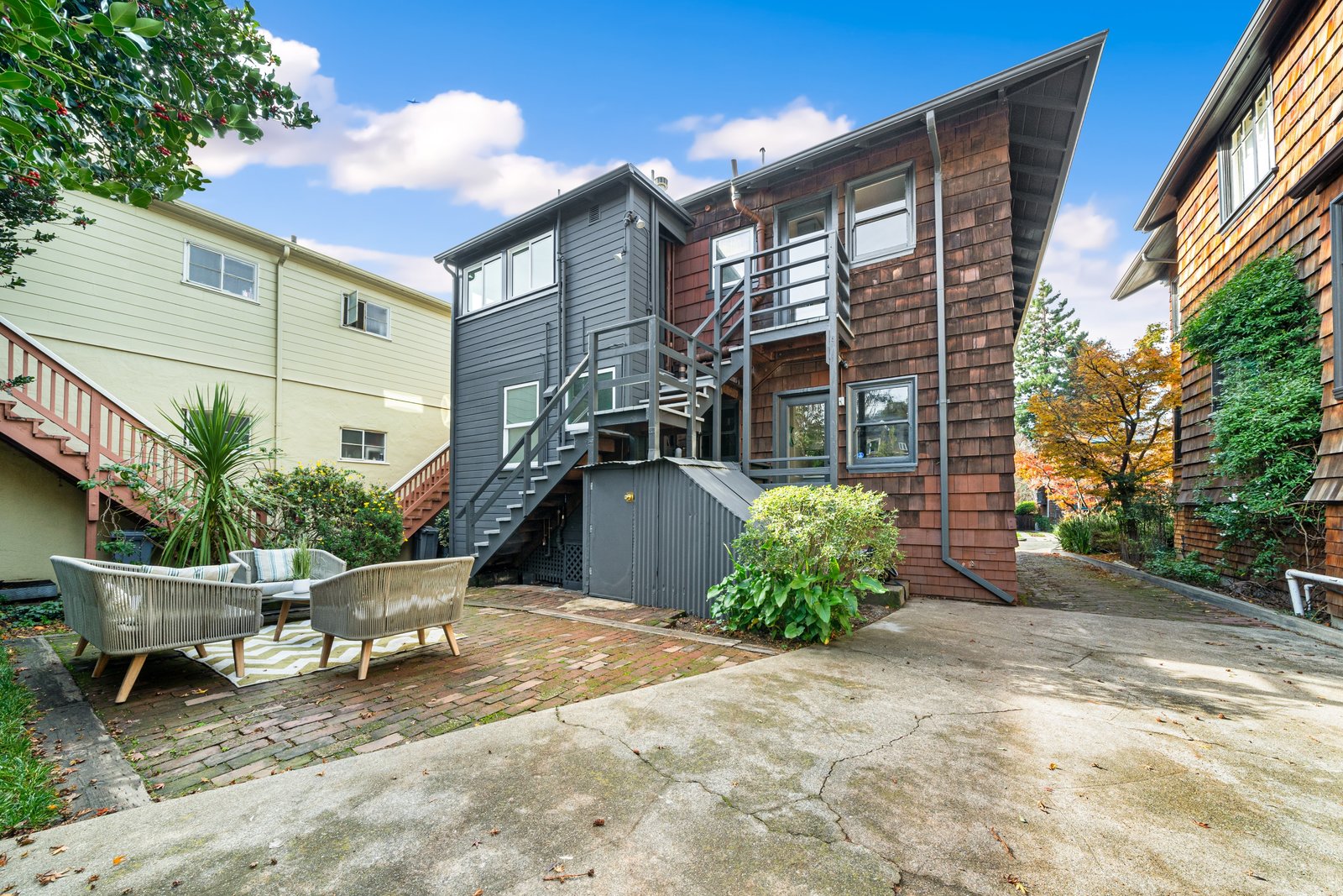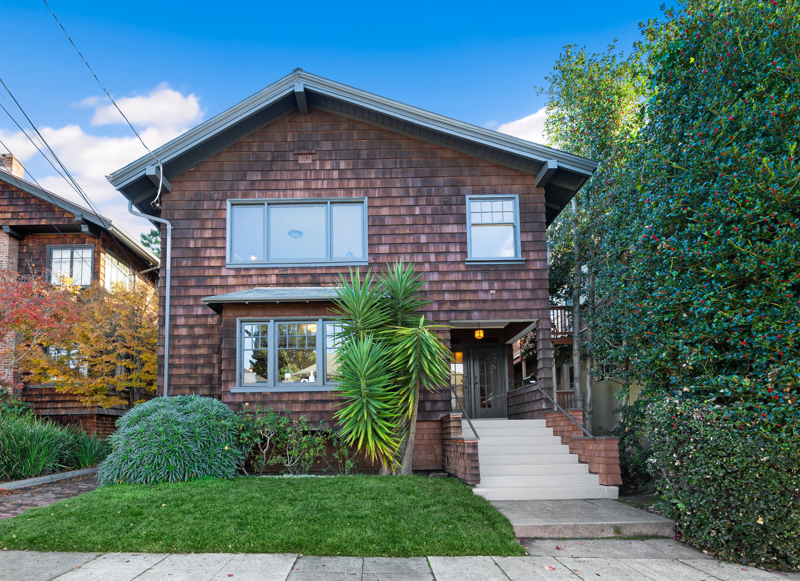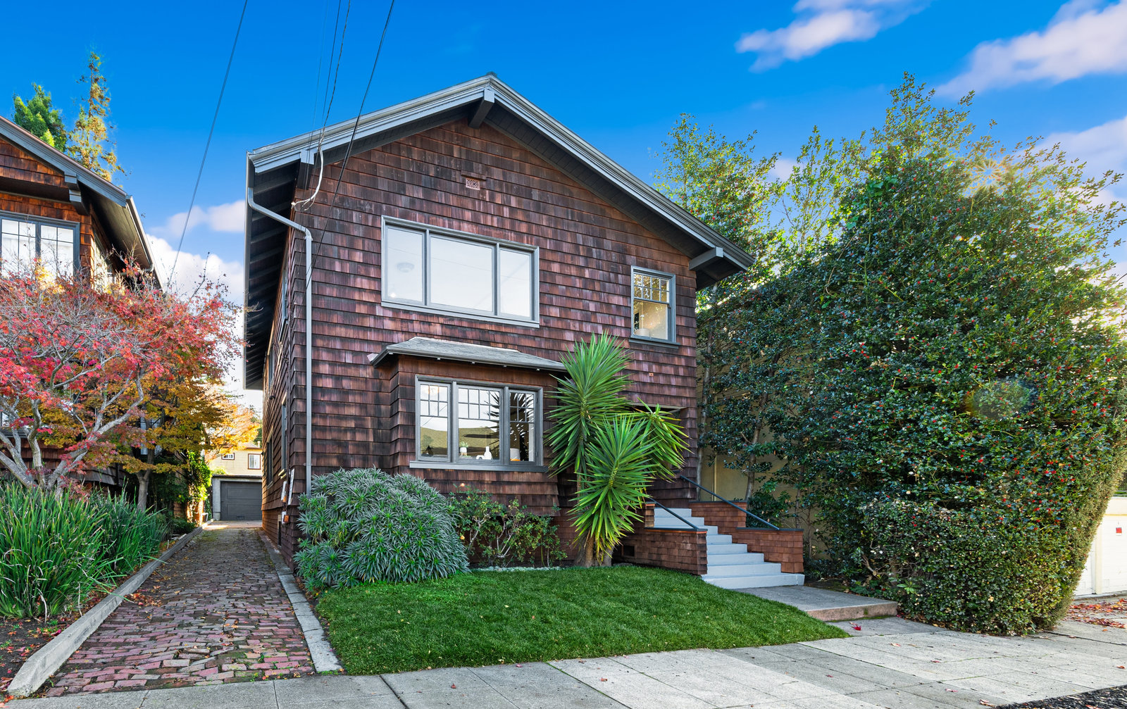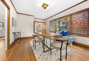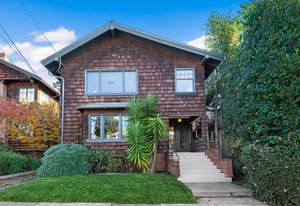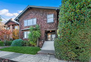 It’s a Julia Morgan. Historic Berkeley brown shingle duplex in this highly desirable North Elmwood community. Two elegant 2 bedroom / 2 bath flats rich in style and character with many unspoiled original craftsman elements including natural unpainted wood trim, double hung windows, and refinished wood floors. Formal dining rooms. Tastefully remodeled kitchens and baths with quartz counters, new appliances, new lights, and waterproof flooring. Newer forced air furnaces, energy efficient lighting, new roof, clear pest. Large, detached garage with additional storage. A very unique and “rare find,'' for an extended family or as an investment opportunity. Live in one flat and rent the other.